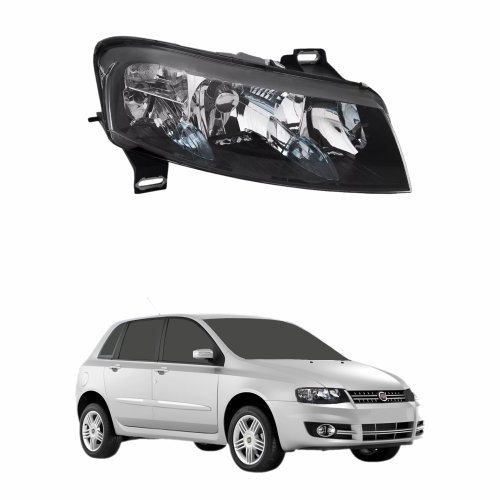 Farol Fiat Stilo 2003 Até 2011 Eletrico Fume Sem Auxiliar Plug Quadrado Lado Direito Passageiro