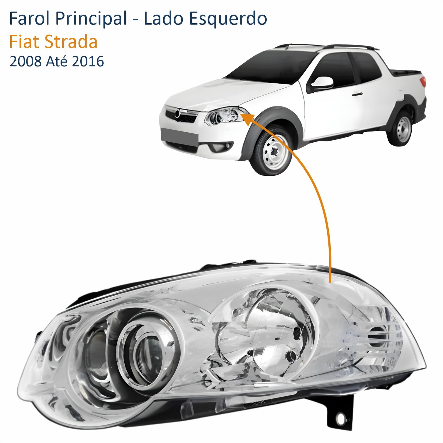 Farol Fiat Strada 2008 Até 2016 Máscara Cromada Com Anel Cromado Lado Esquerdo Motorista