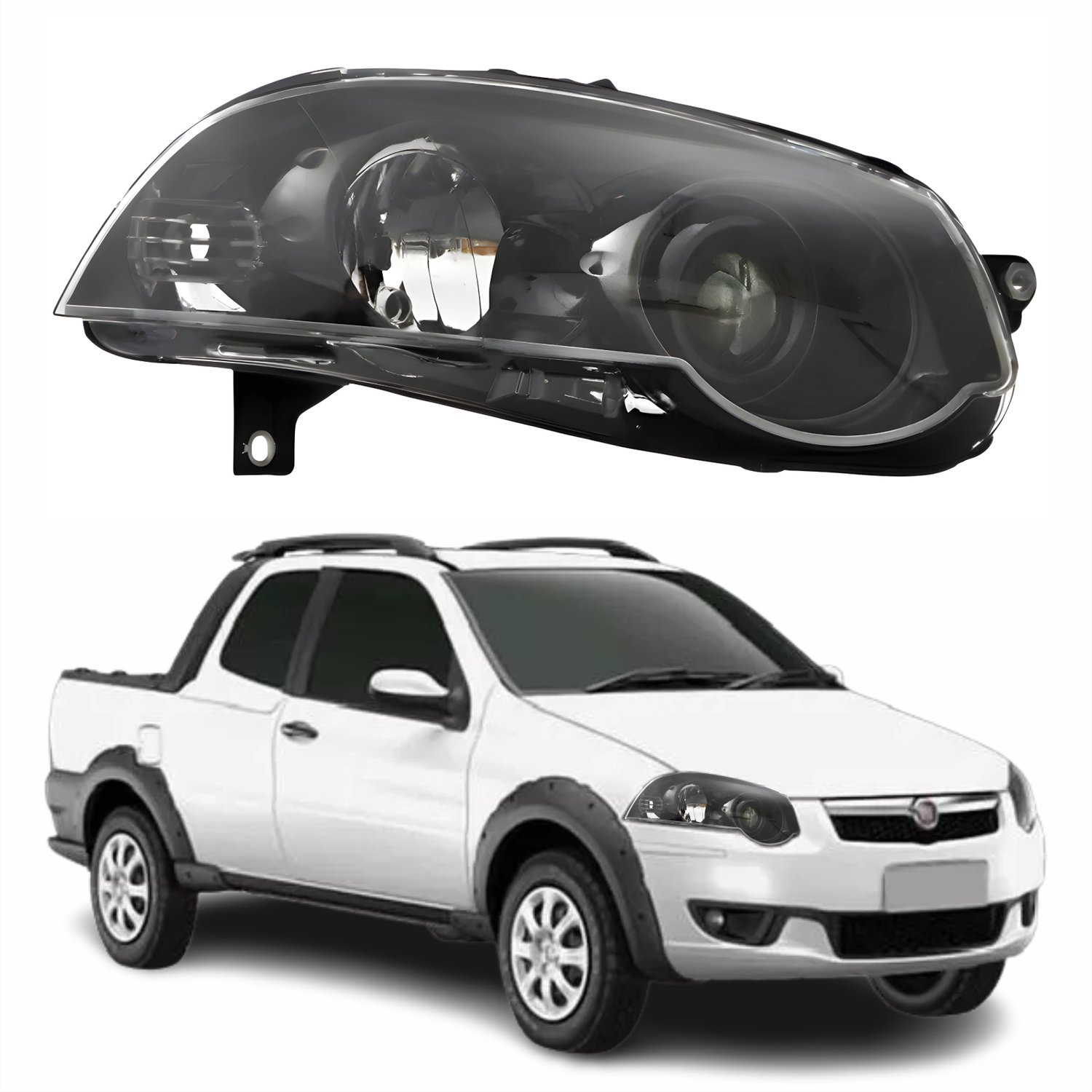 Farol Fiat Strada G4 2008 Até 2016 Foco Duplo Máscara Negra com Anel Preto Lado Direito Passageiro