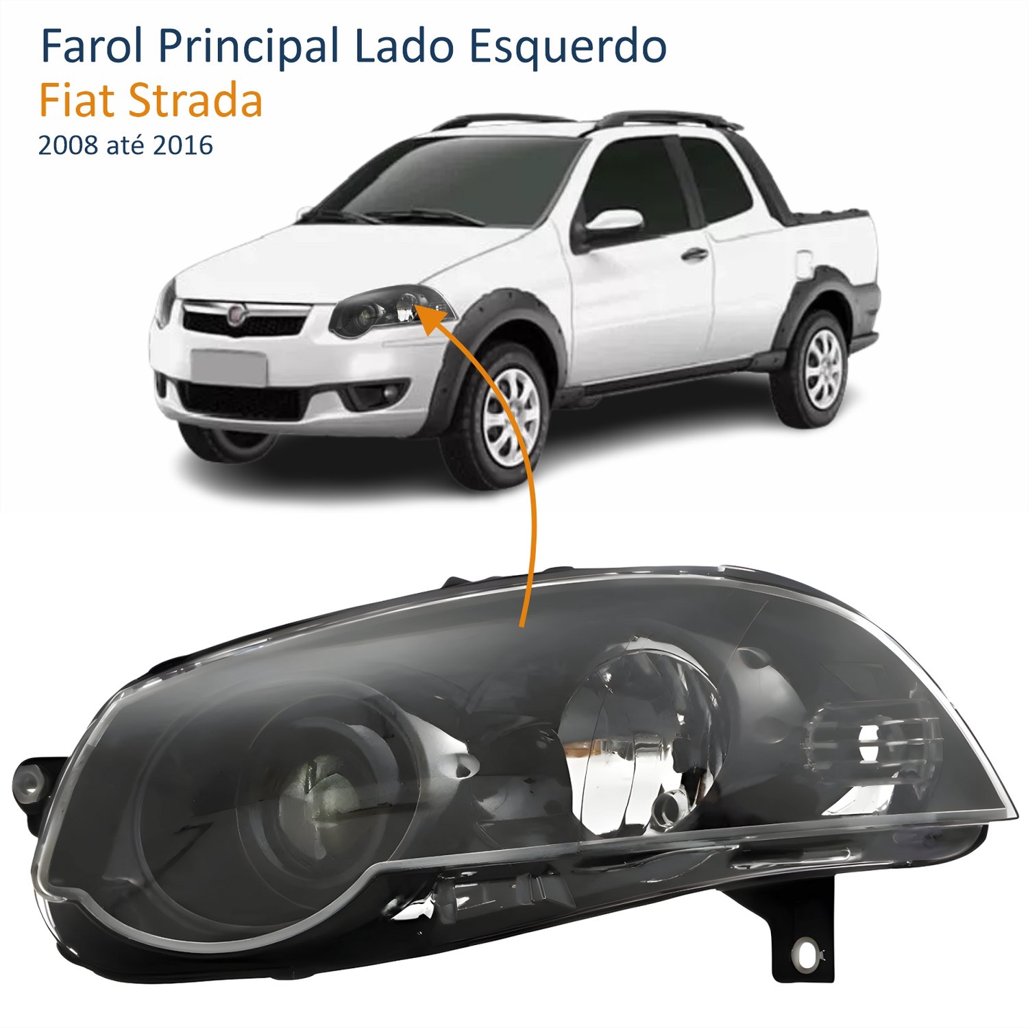 Farol Fiat Strada G4 2008 Até 2016 Foco Duplo Máscara Negra com Anel Preto Lado Esquerdo Motorista