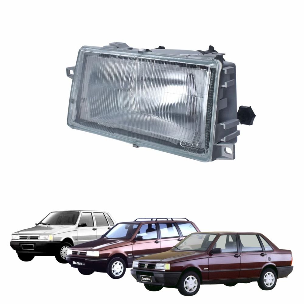 Farol Fiat Uno Fiorino Elba Premio 1991 até 2003 Lente de Vidro Foco Simples Máscara Cromada Lado Esquerdo Motorista