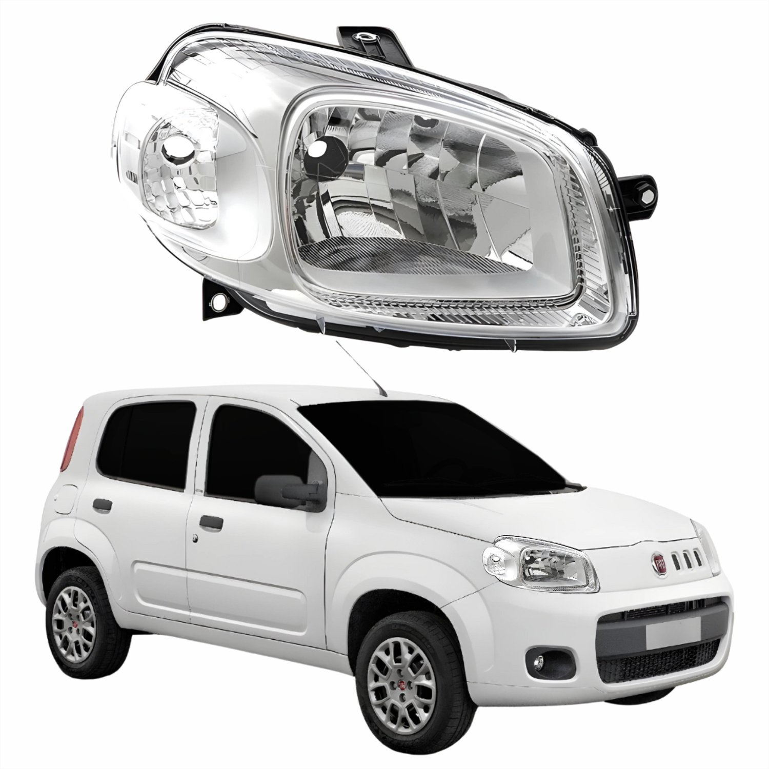 Farol Fiat Uno Vivace 2010 2011 2012 2013 2014 Máscara Cromada Lado Direito Passageiro