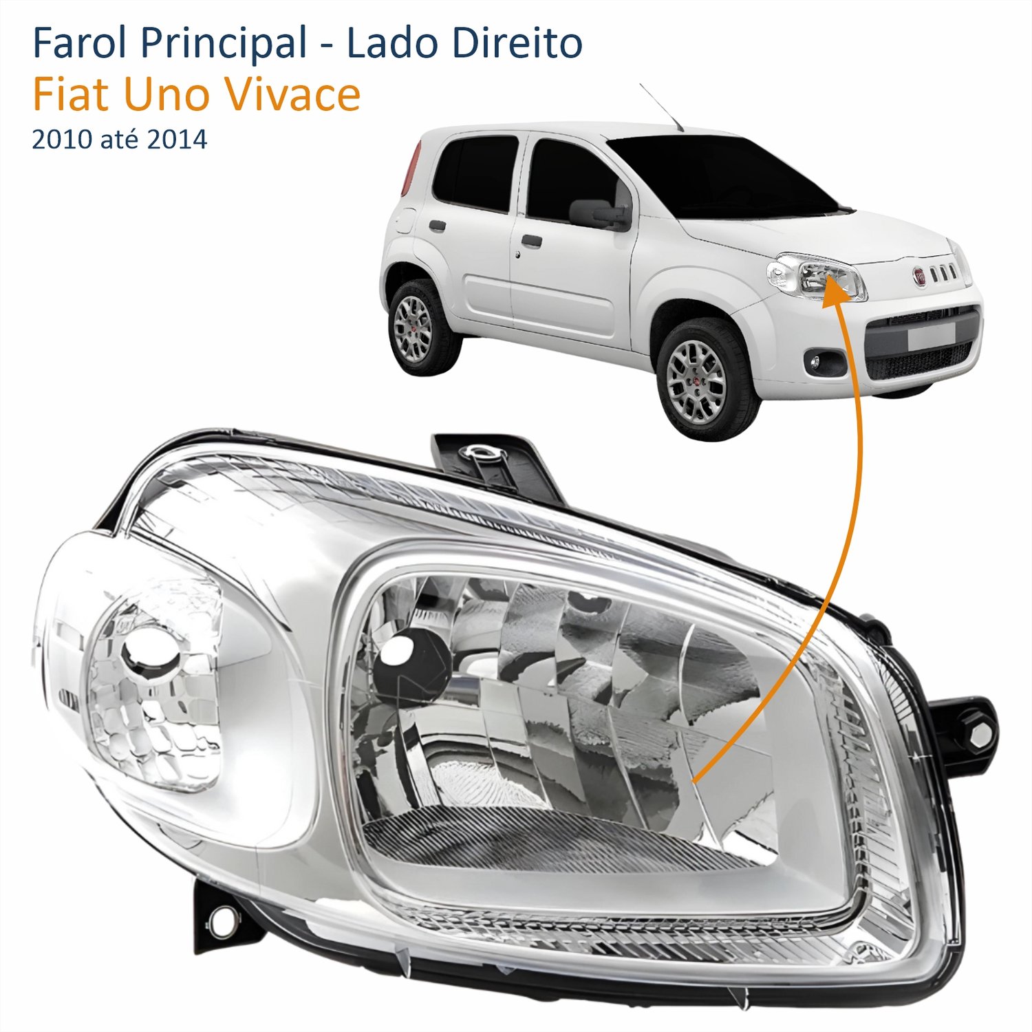 Farol Fiat Uno Vivace 2010 Até 2014 Original Máscara Cromada Lado Direito Passageiro