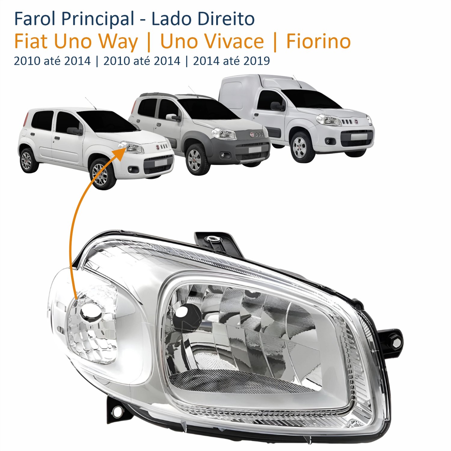 Farol Fiat Uno Way Vivace 2010 Até 2014 Fiorino 2014 Até 2019 Original Máscara Cromada Lado Direito Passageiro