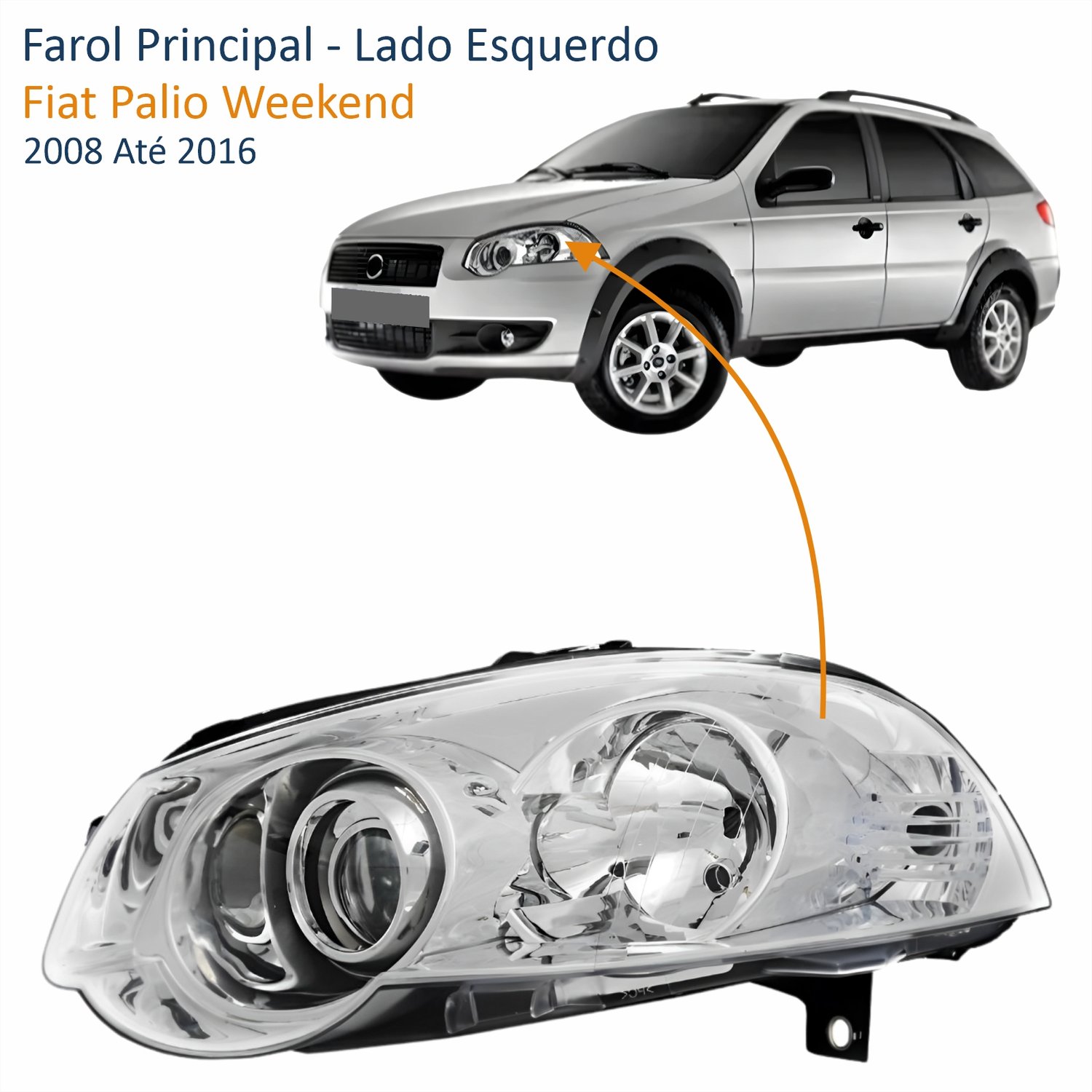 Farol Fiat Weekend 2008 Até 2016 Máscara Cromada Com Anel Cromado Lado Esquerdo Motorista