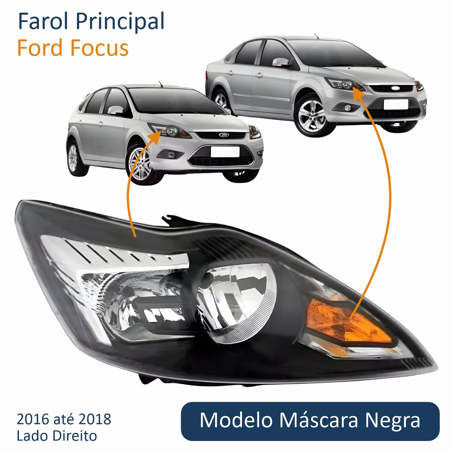 Farol Ford Focus 2009 Até 2013 Máscara Negra Lado Direito Passageiro