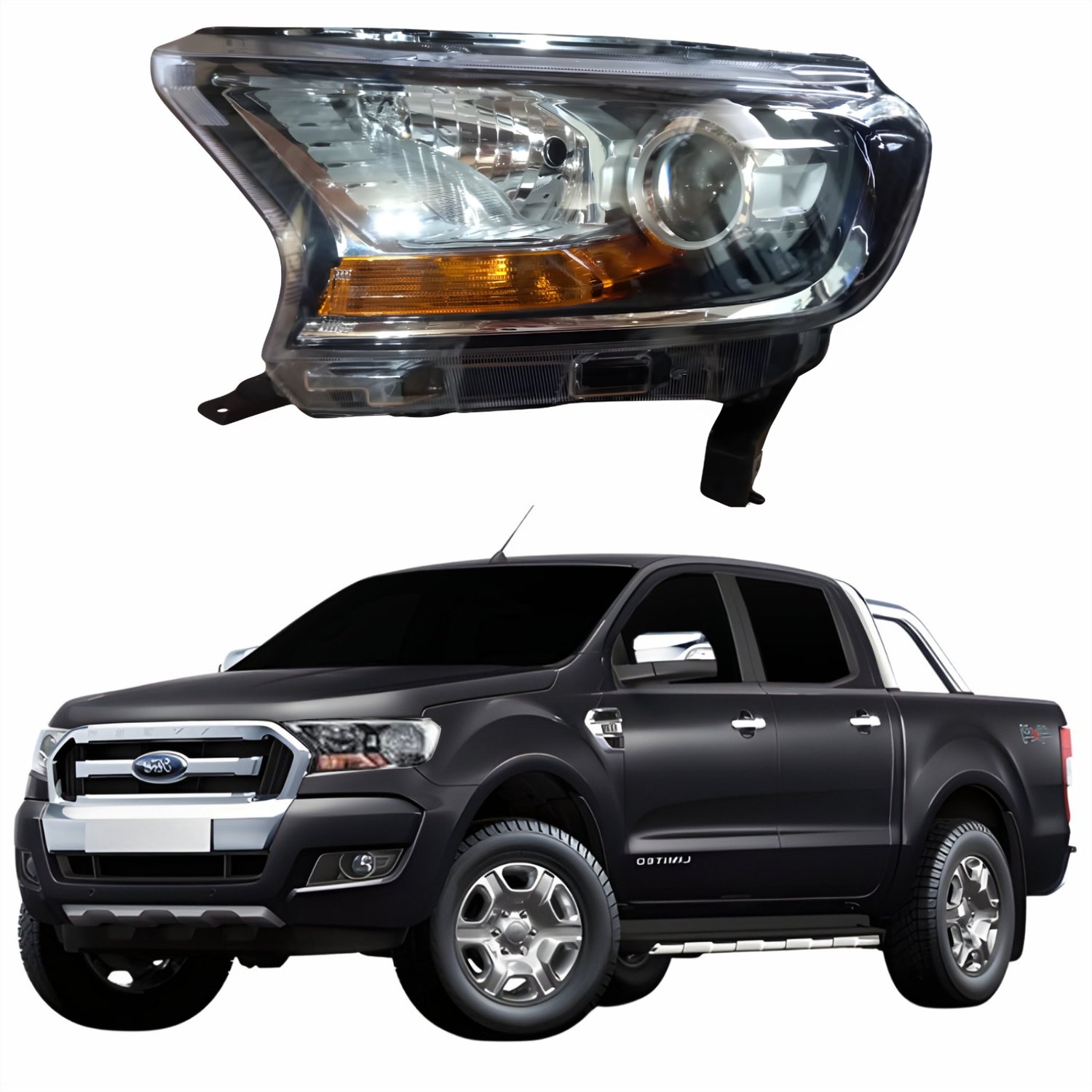 Farol Ford Ranger 2017 Até 2023 Máscara Negra Com Projetor Lado Esquerdo Motorista