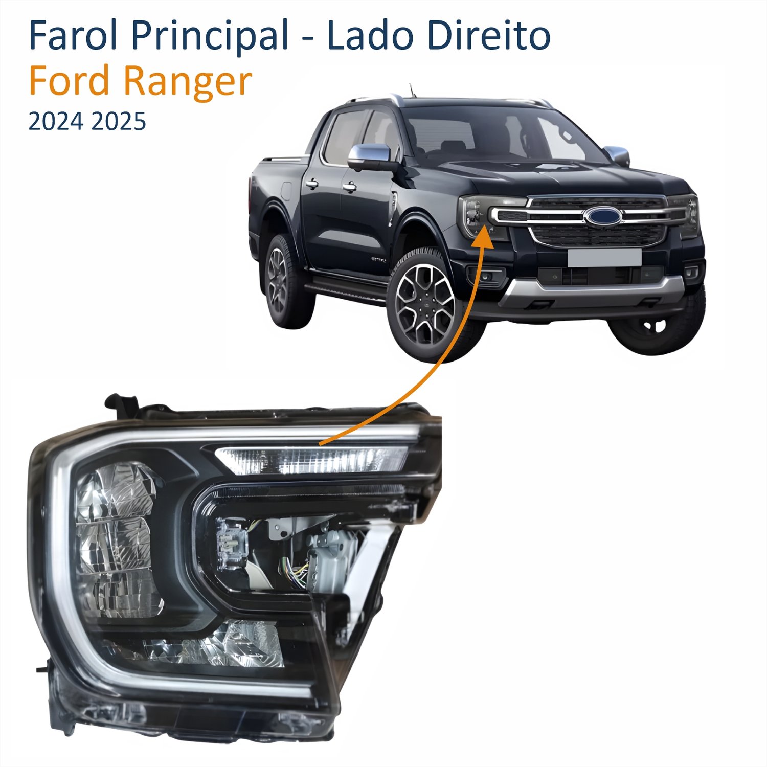 Farol Ford Ranger 2024 2025 Full Led Sem Projetor Com Reator Lado Direito Passageiro
