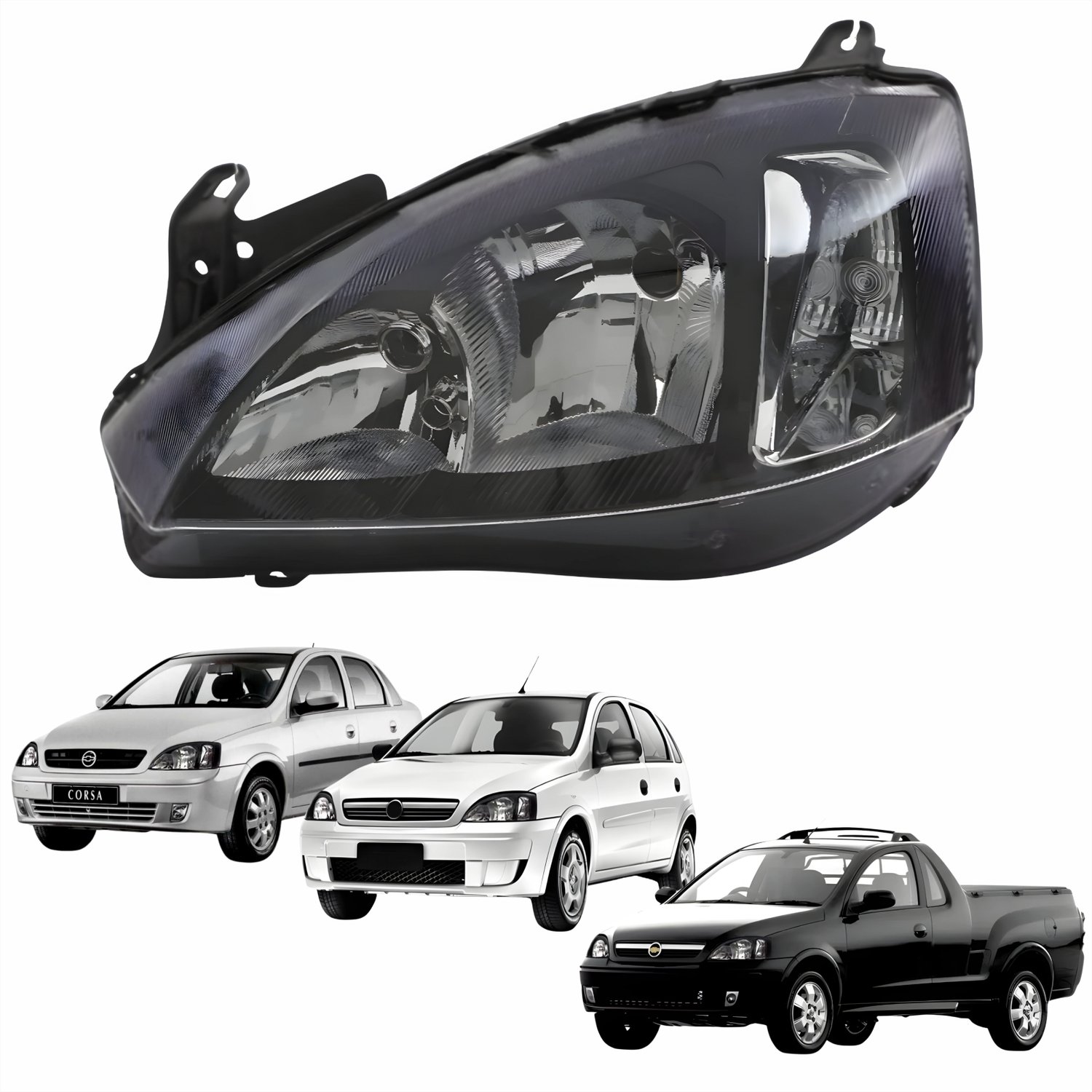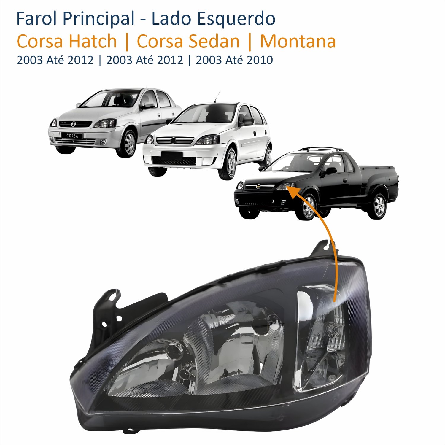 Farol GM Corsa 2003 Até 2012 Montana 2003 Até 2010 Foco Duplo Máscara Negra Pisca Liso Liso Lado Esquerdo Motorista