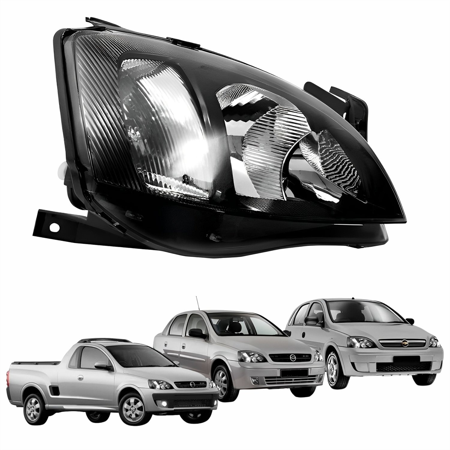 Farol Gm Corsa 2003 até 2012 Montana 2003 até 2010 Foco Duplo Máscara Negra Pisca Raiado Lado Direito Passageiro