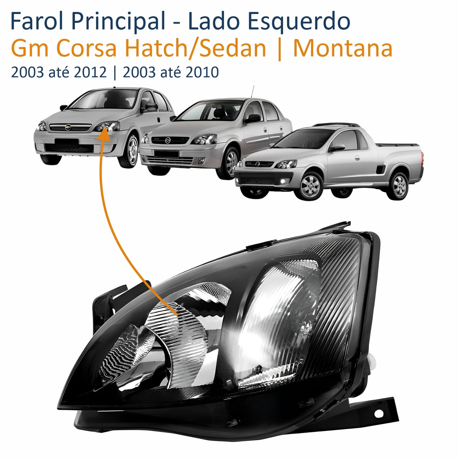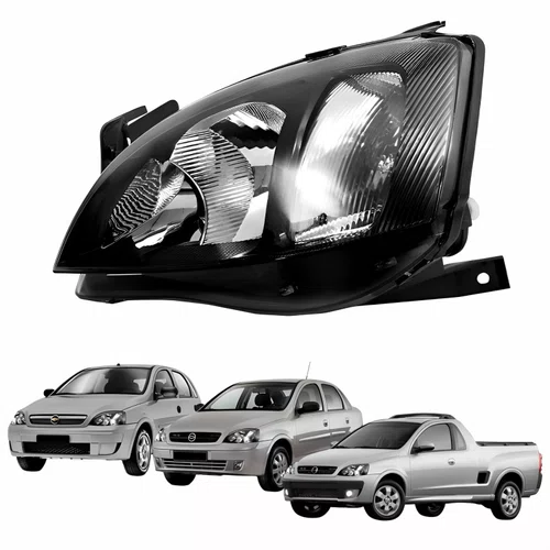 Farol Gm Corsa 2003 até 2012 Montana 2003 até 2010 Foco Duplo Máscara Negra Pisca Raiado Lado Esquerdo Motorista