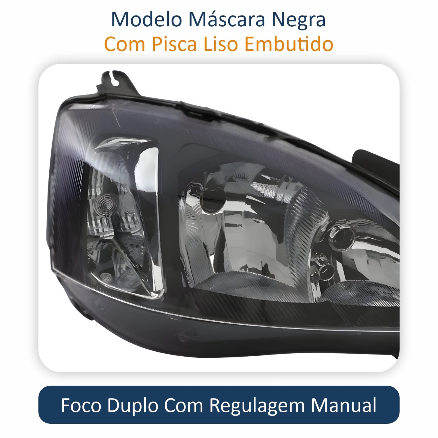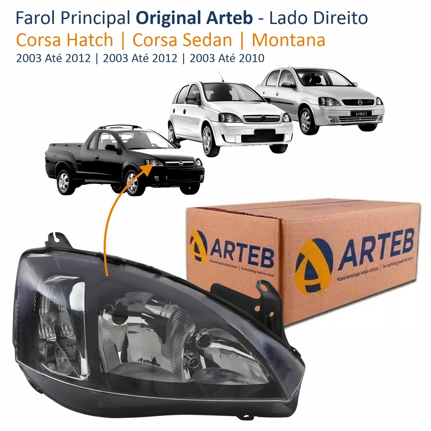 Farol GM Corsa 2003 Até 2012 Montana 2003 Até 2010 Original Arteb Foco Duplo Máscara Negra Pisca Liso Lado Direito Passageiro