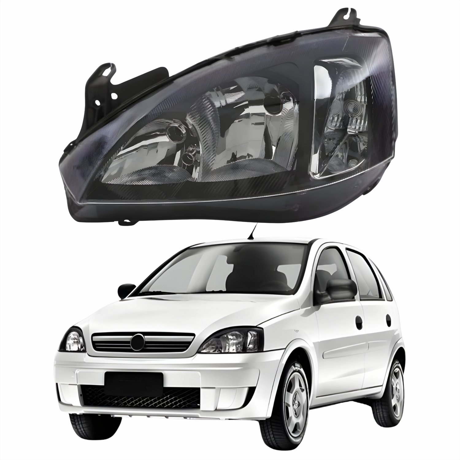Farol GM Corsa 2003 Até 2012 Montana 2003 Até 2010 Original Arteb Foco Duplo Máscara Negra Pisca Liso Lado Esquerdo MotoristaTamanho: Único
