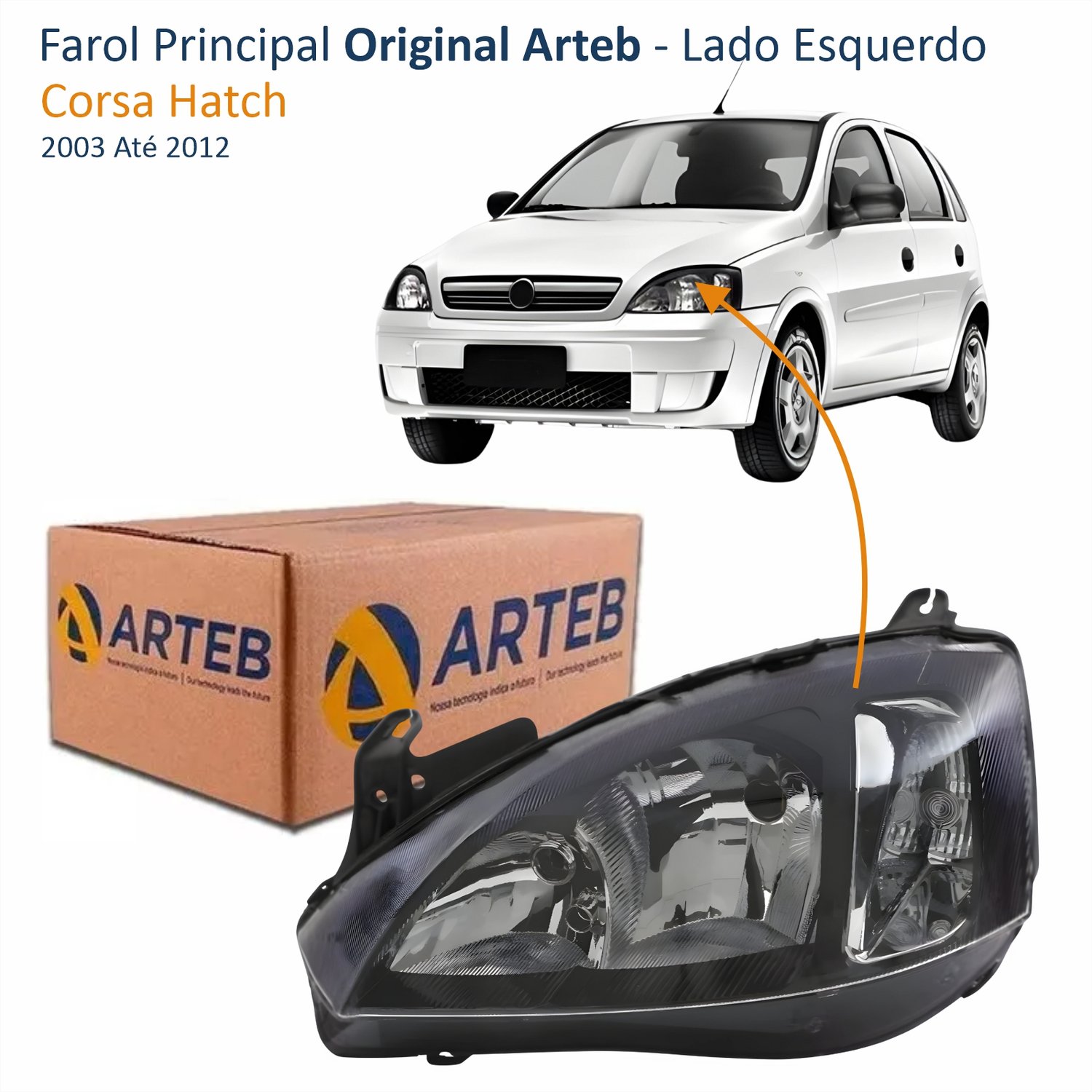 Farol GM Corsa Hatch 2003 Até 2012 Original Arteb Foco Duplo Máscara Negra Pisca Liso Lado Esquerdo Motorista