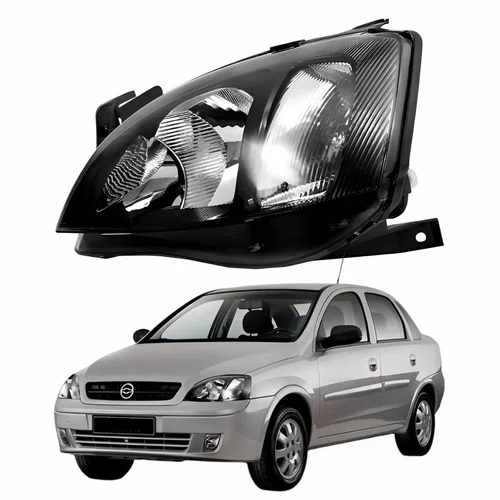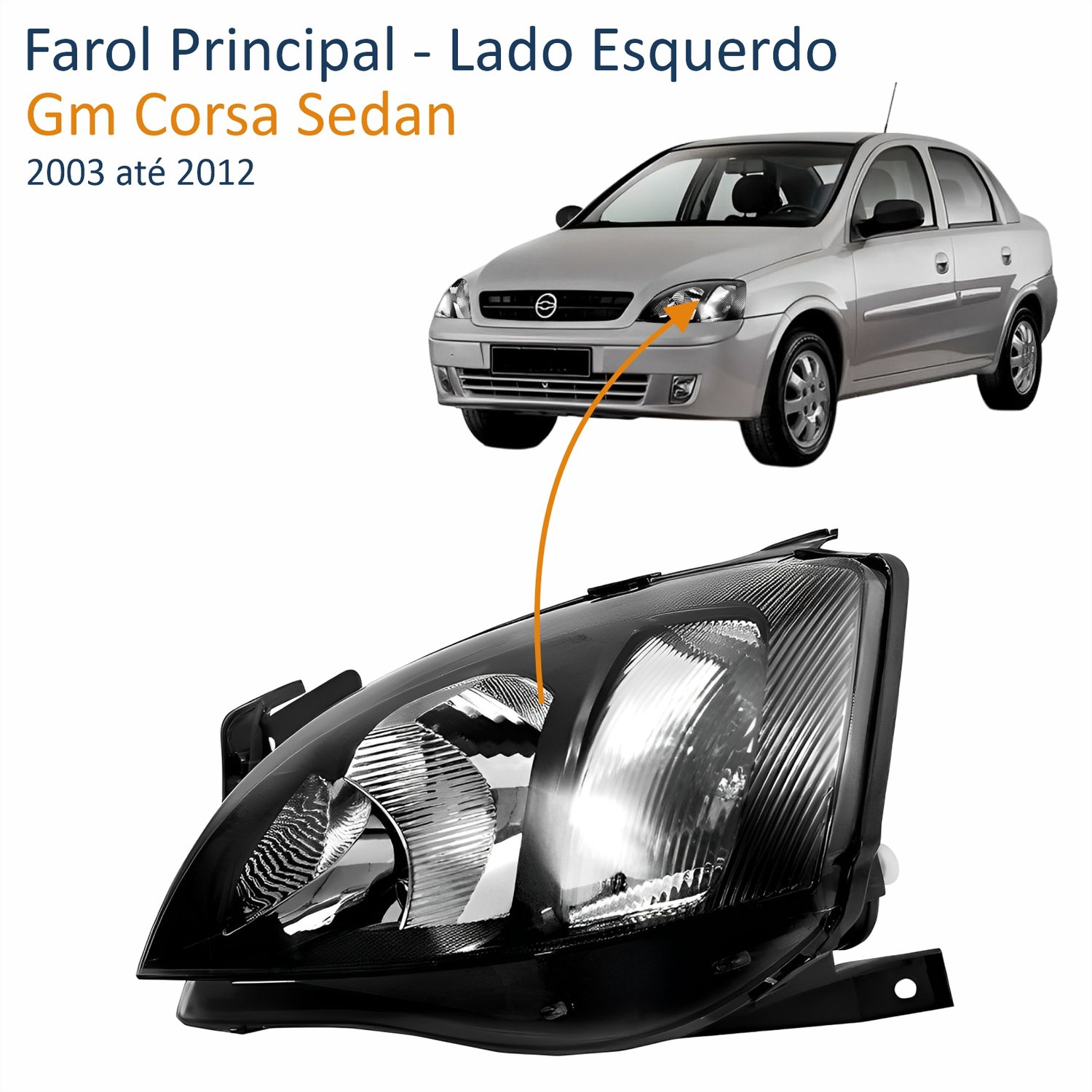 Farol Gm Corsa Sedan 2003 até 2012 Foco Duplo Máscara Negra Pisca Raiado Lado Esquerdo Motorista