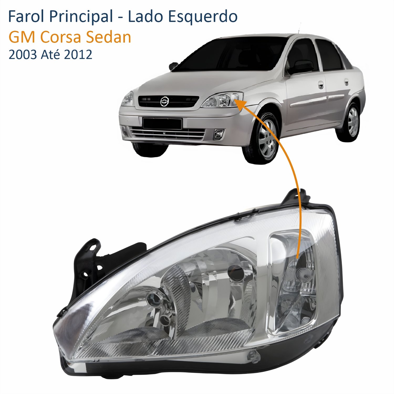 Farol GM Corsa Sedan 2003 Até 2012 Lado Esquerdo Motorista