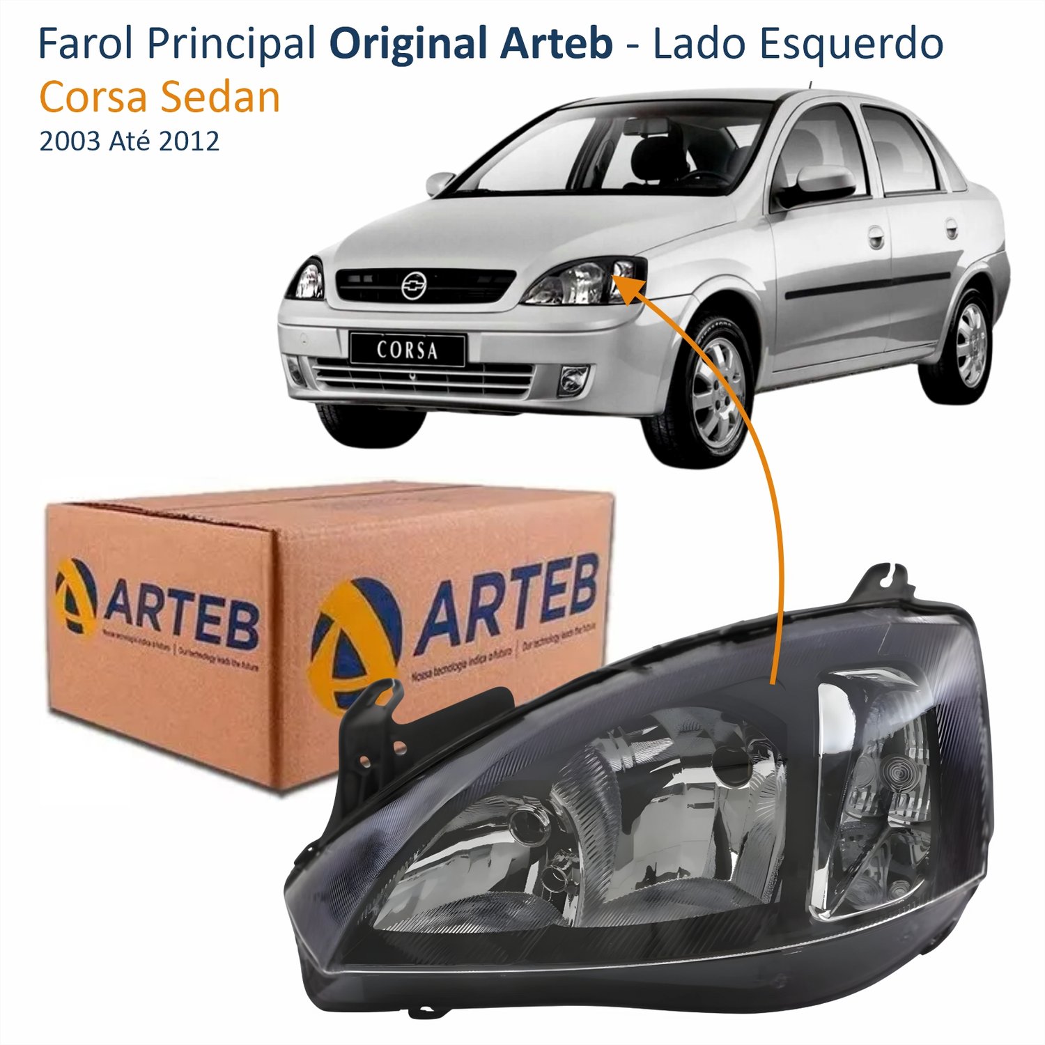 Farol GM Corsa Sedan 2003 Até 2012 Original Arteb Foco Duplo Máscara Negra Pisca Liso Lado Esquerdo Motorista