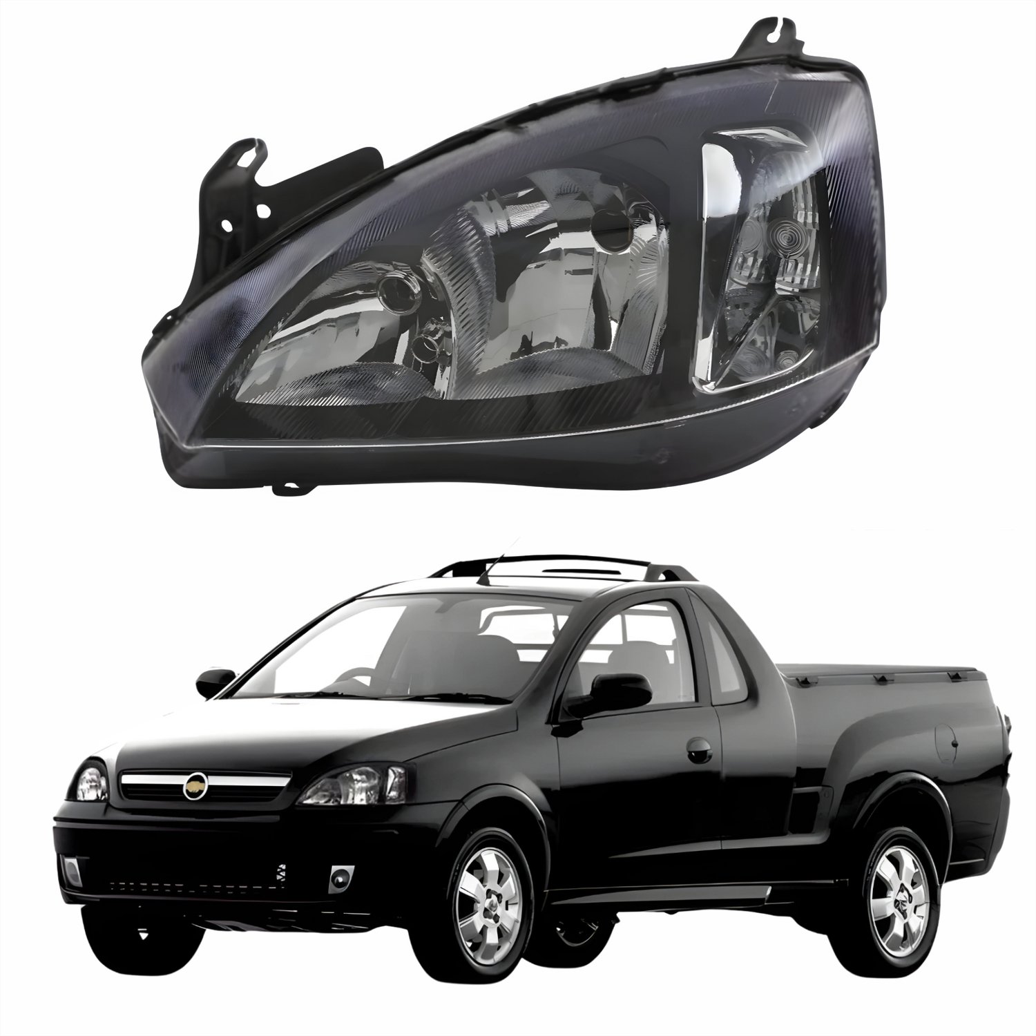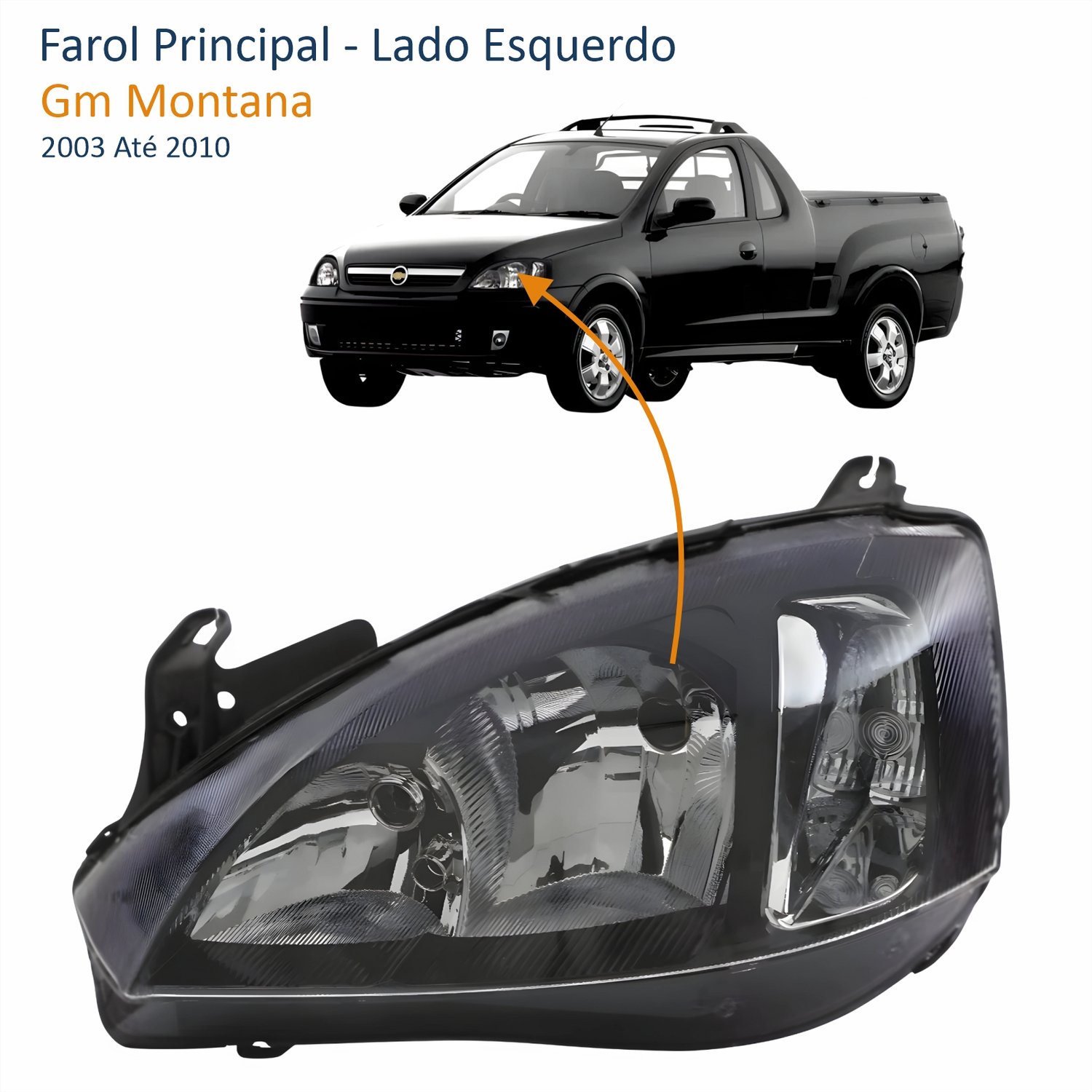 Farol GM Montana 2003 Até 2010 Foco Duplo Máscara Negra Pisca Liso Lado Esquerdo Motorista