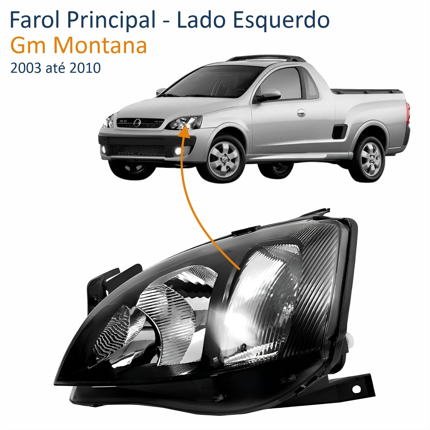 Farol Gm Montana 2003 até 2010 Foco Duplo Máscara Negra Pisca Raiado Lado Esquerdo Motorista