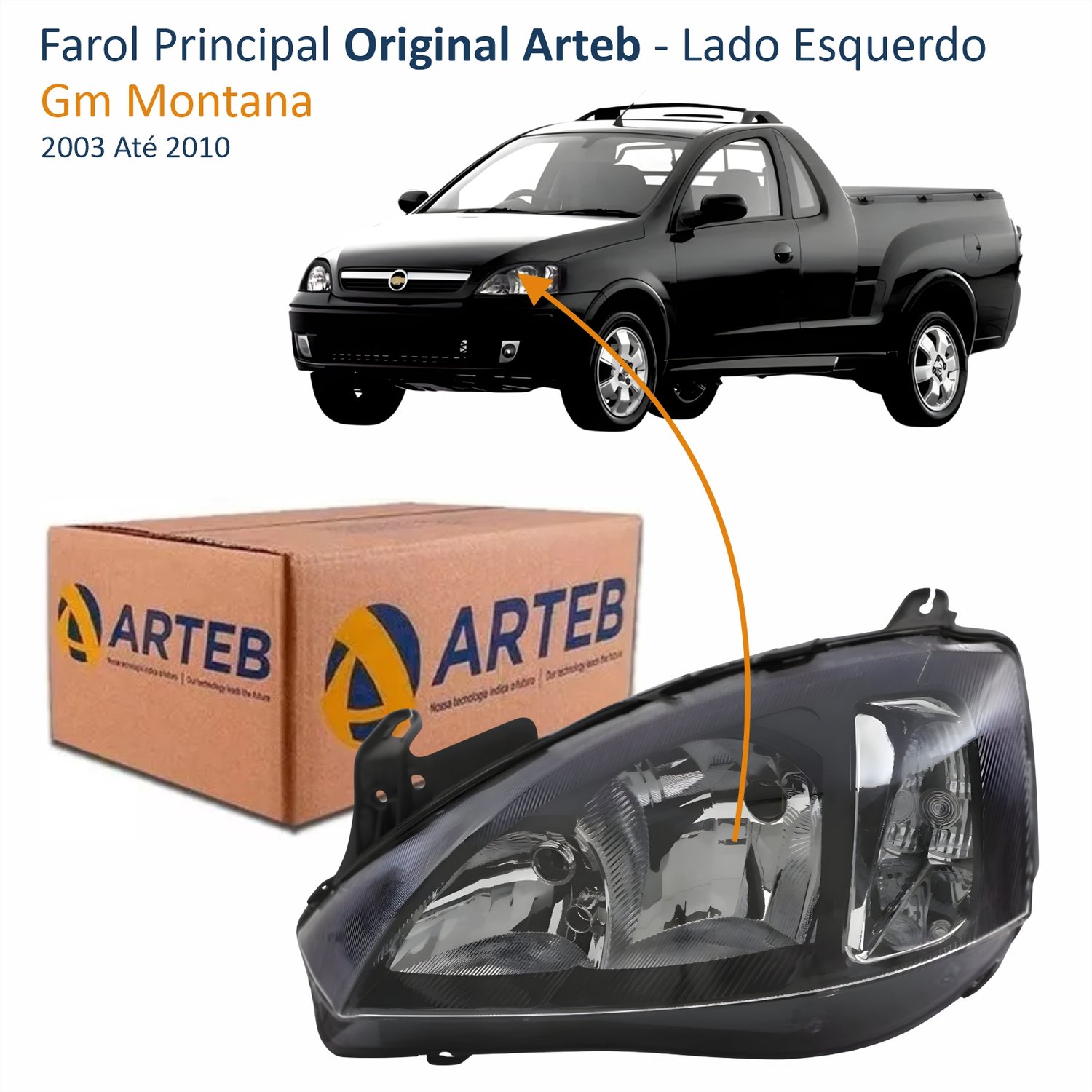 Farol GM Montana 2003 Até 2010 Original Arteb Foco Duplo Máscara Negra Pisca Liso Lado Esquerdo Motorista