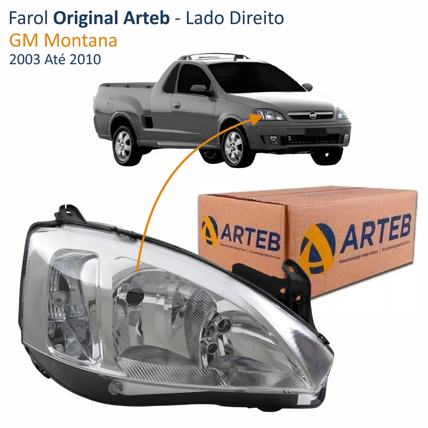 Farol GM Corsa Hatch Sedan 2003 Até 2012 Montana 2003 Até 2010 Original Arteb Lado Direito PassageiroLado: Único