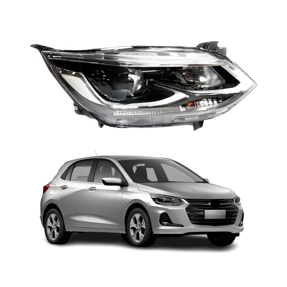 Farol Gm Onix 2020 Até 2023 Sem Led Com Projetor Manual Cromado Lado Direito Passageiro
