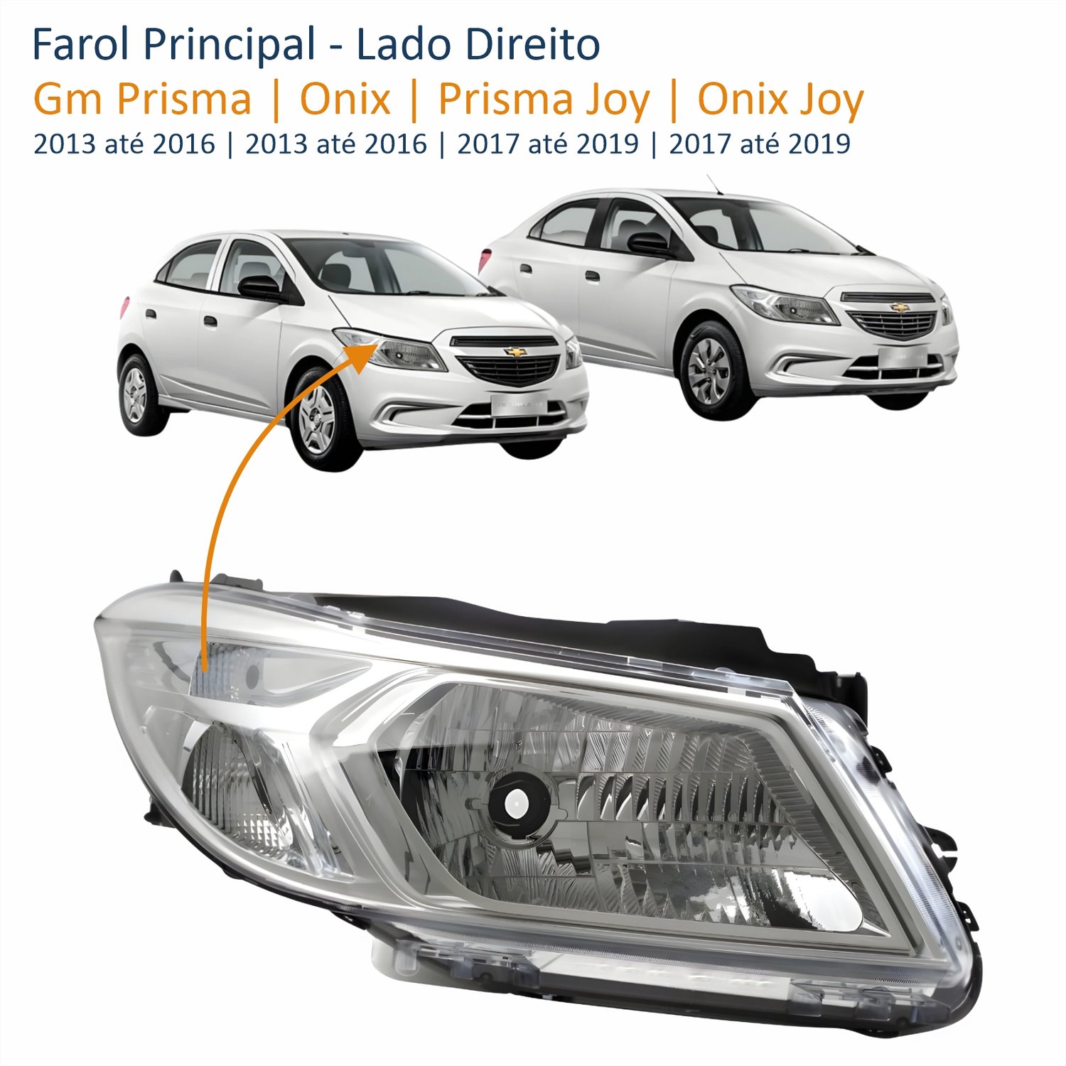 Farol Gm Onix Prisma 2013 até 2016 Onix Joy Prisma Joy 2017 até 2019 Lado Direito Passageiro