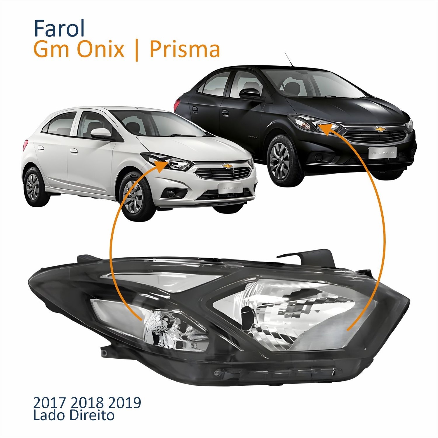 Farol Gm Onix Prisma 2017 Até 2020 Máscara Negra Lado Direito Passageiro