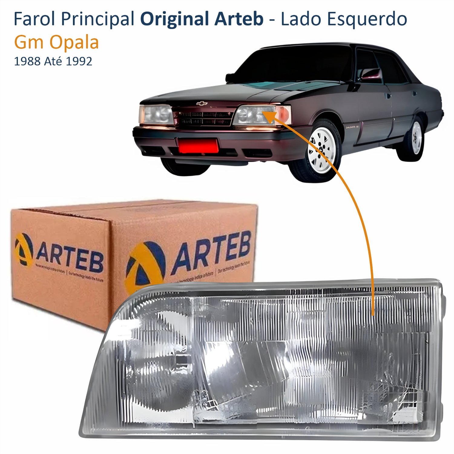 Farol Gm Opala 1988 Até 1992 Original Arteb Lado Esquerdo Motorista