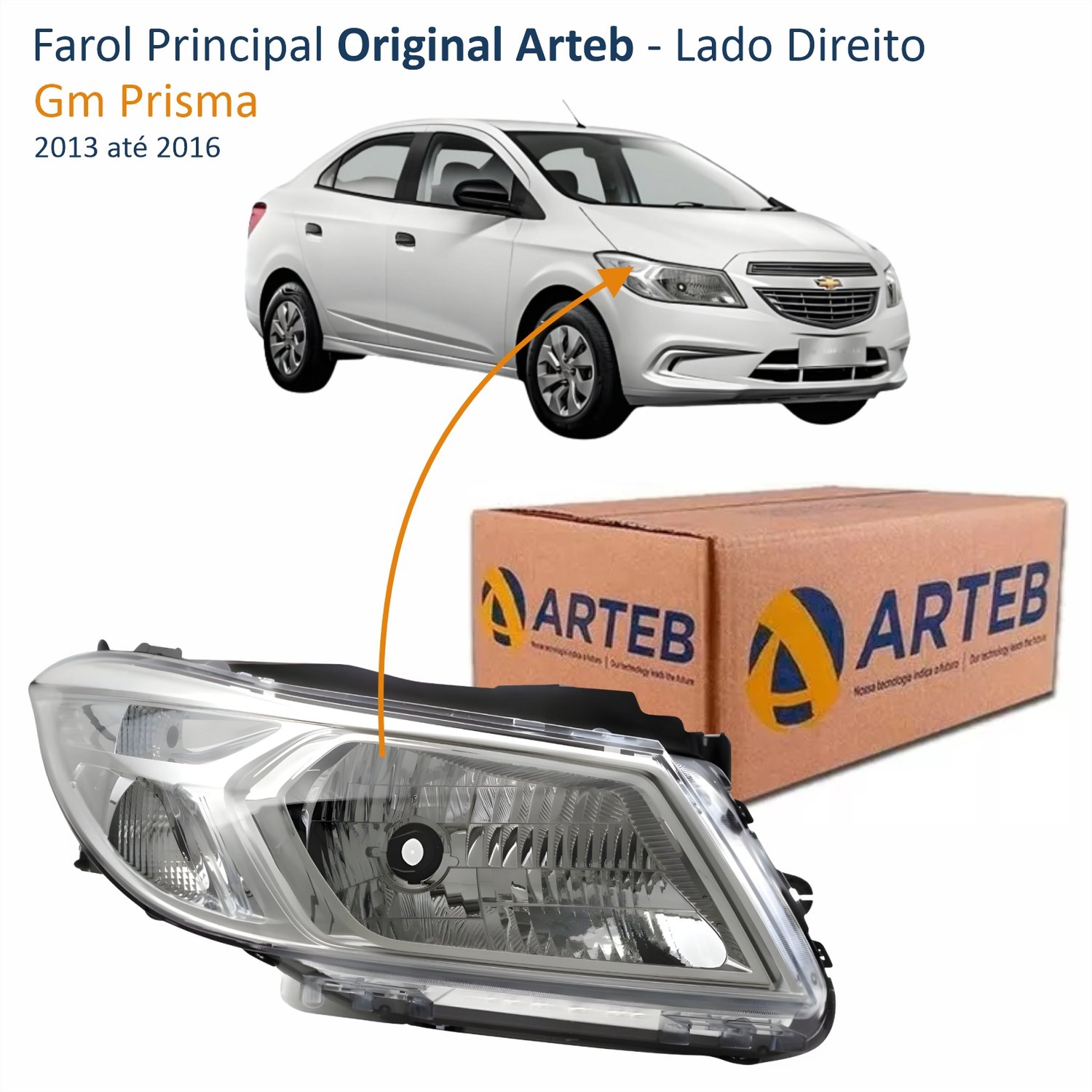 Farol Gm Prisma 2013 até 2016 Original Arteb Lado Direito Passageiro