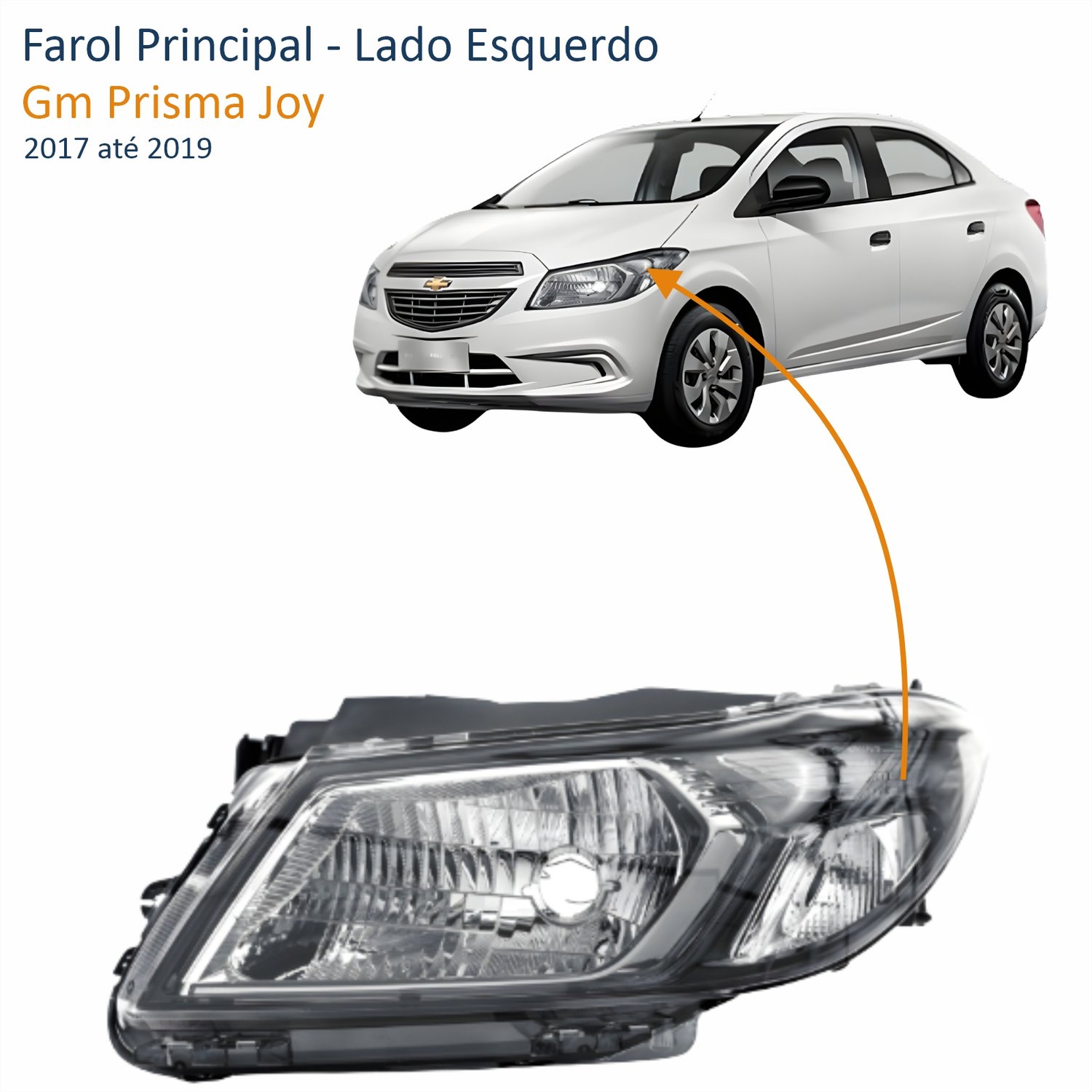 Farol Gm Prisma Onix 2013 até 2016 Prisma Joy Onix Joy 2017 até 2019 Fumê Lado Esquerdo MotoristaLado: Único