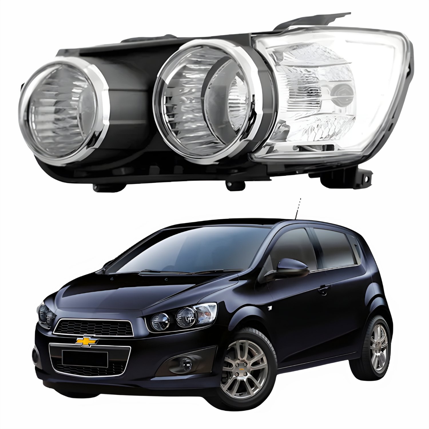 Farol Gm Sonic Hatch 2012 Até 2016 Aro Cromado Lado Esquerdo Motorista