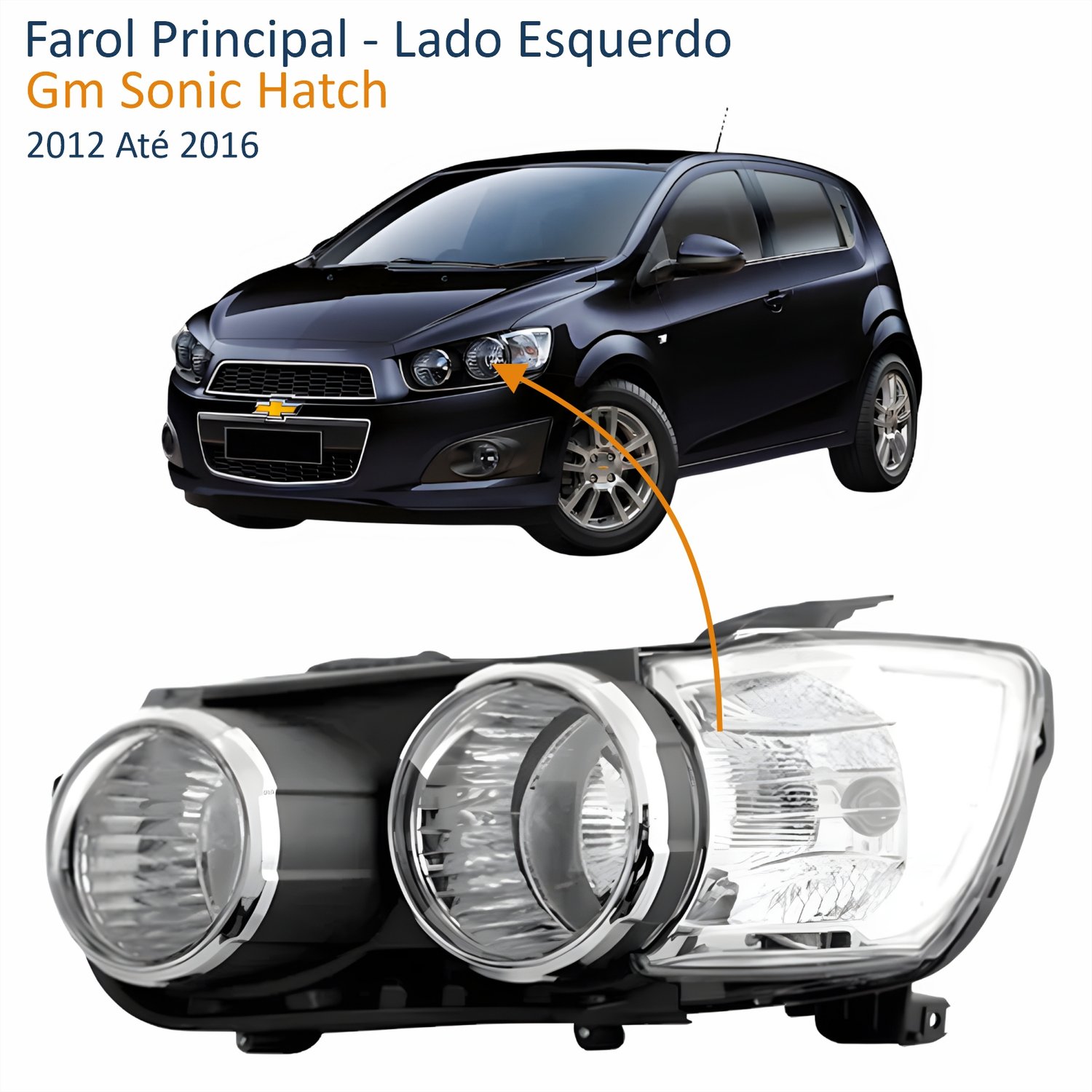 Farol Gm Sonic Hatch Sedan 2012 Até 2016 Aro Cromado Lado Esquerdo MotoristaLado: Único