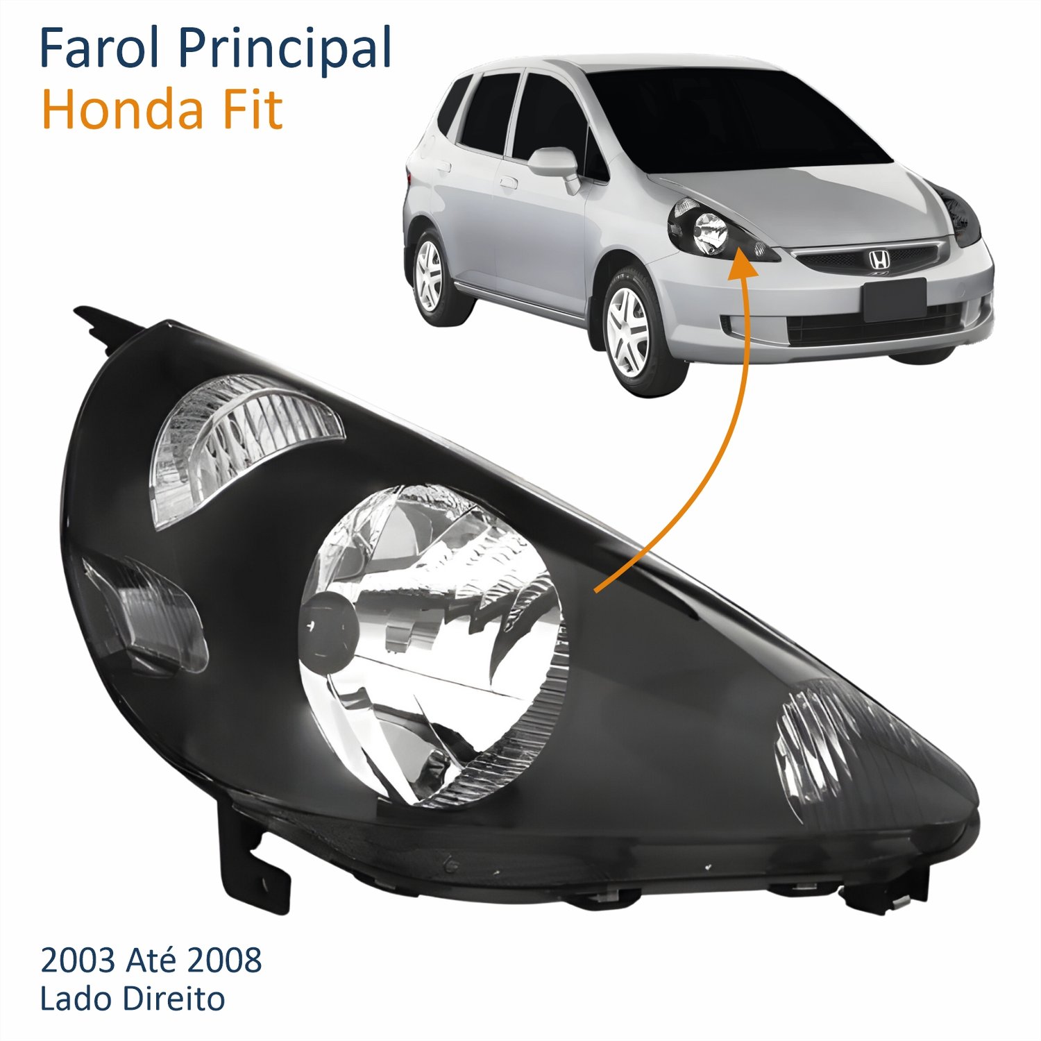 Farol Honda Fit 2003 Até 2008 Máscara Negra Lado Direito Passageiro