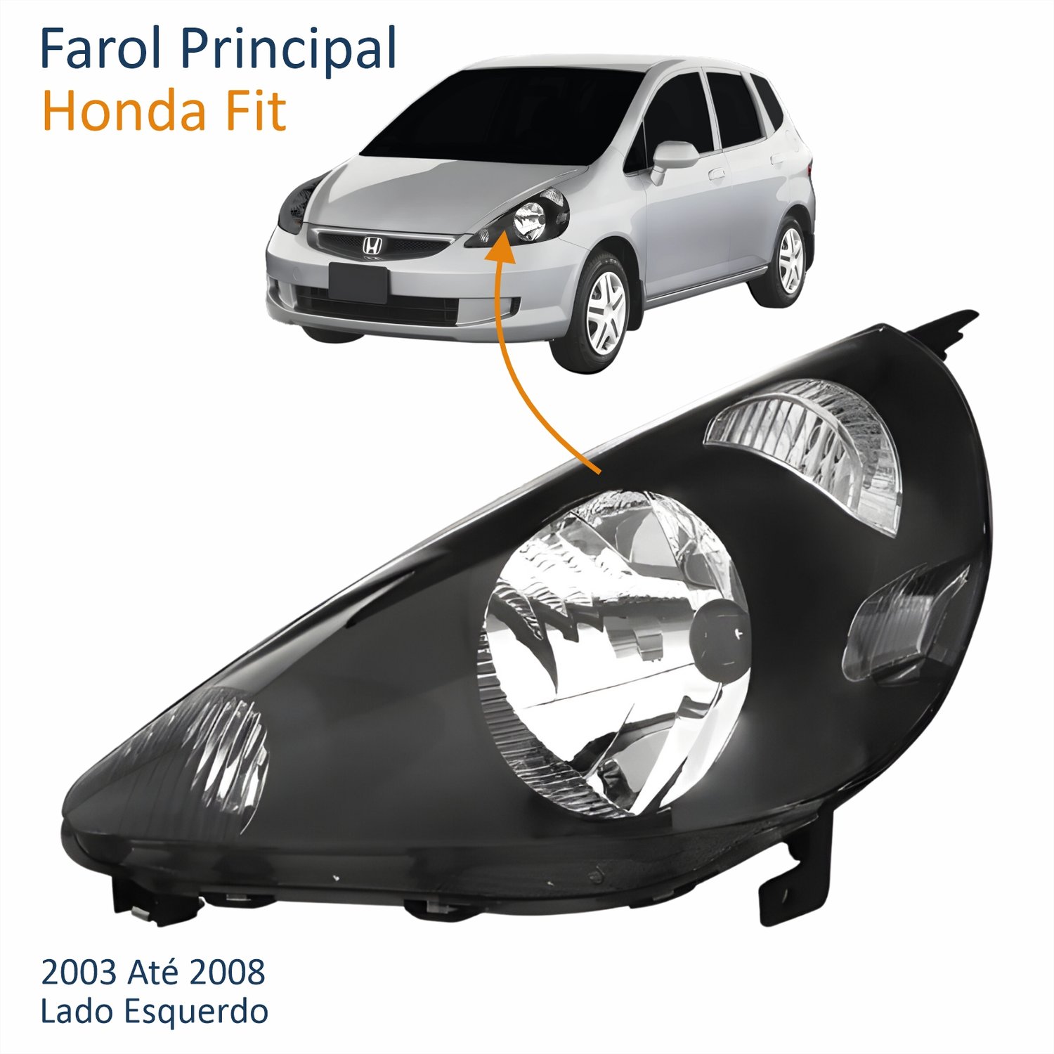 Farol Honda Fit 2003 Até 2008 Máscara Negra Lado Esquerdo Motorista
