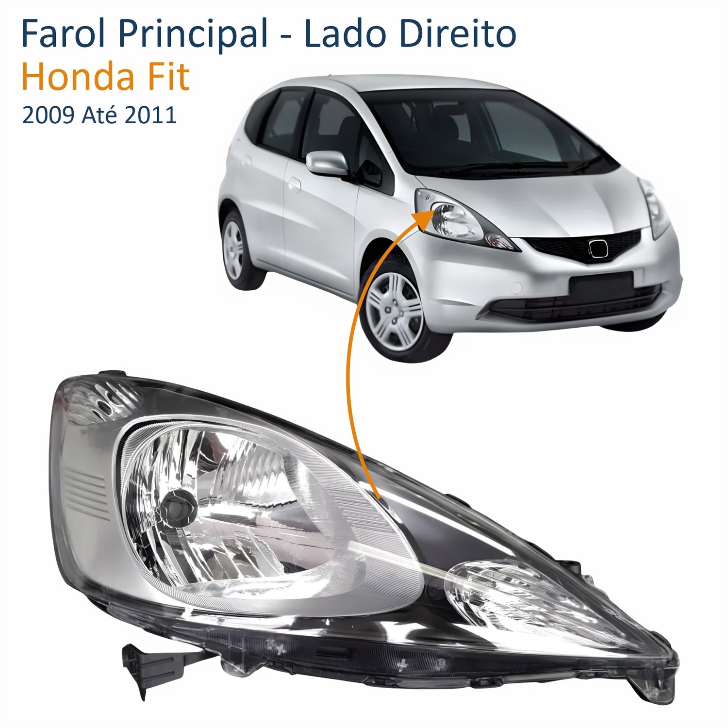 Farol Honda Fit 2009 Até 2011 Máscara Negra Lado Direito Passageiro