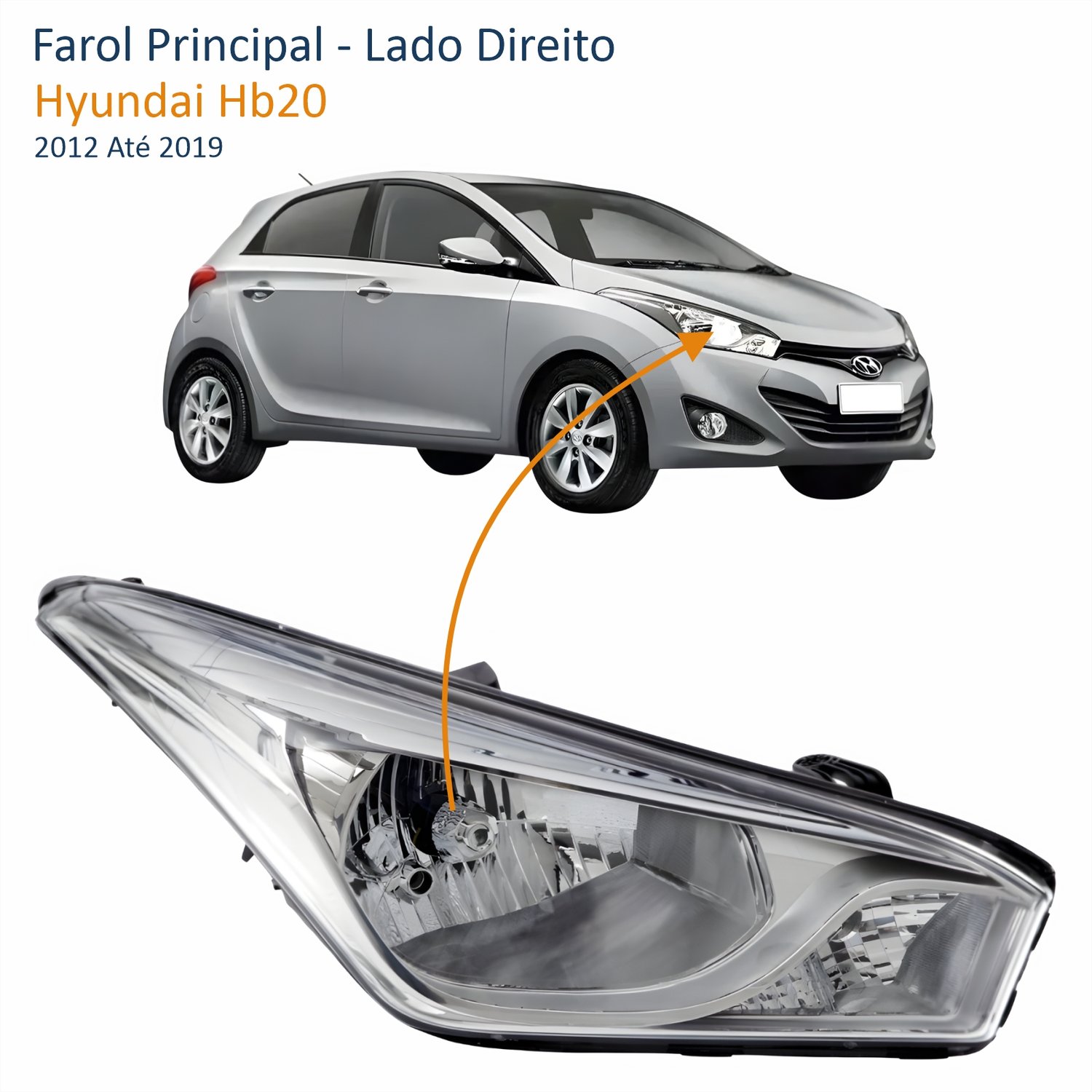 Farol Hyundai Hb20 2012 Até 2019 Máscara Cromada Lado Direito Passageiro