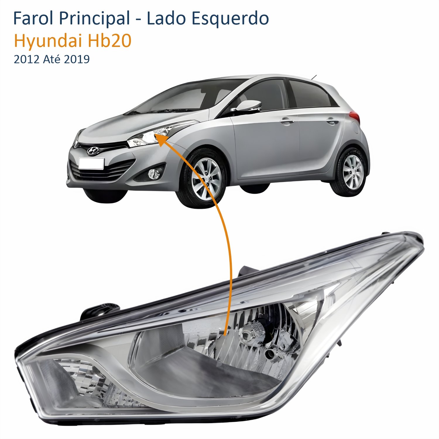 Farol Hyundai Hb20 2012 Até 2019 Máscara Cromada Lado Esquerdo Motorista