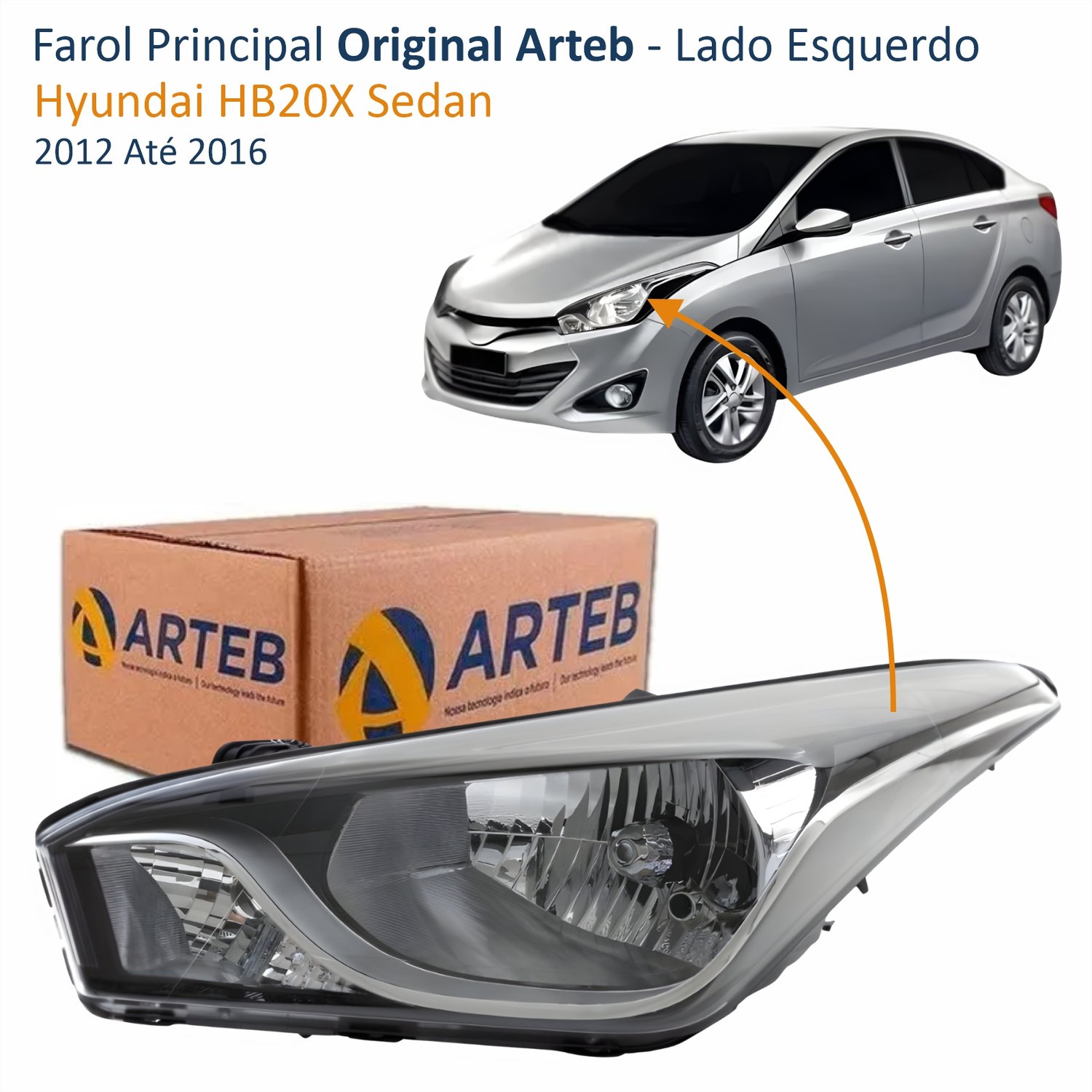 Farol Hyundai HB20X Sedan 2012 Até 2016 Original Arteb Máscara Negra Com Friso Cromado Lado Esquerdo Motorista