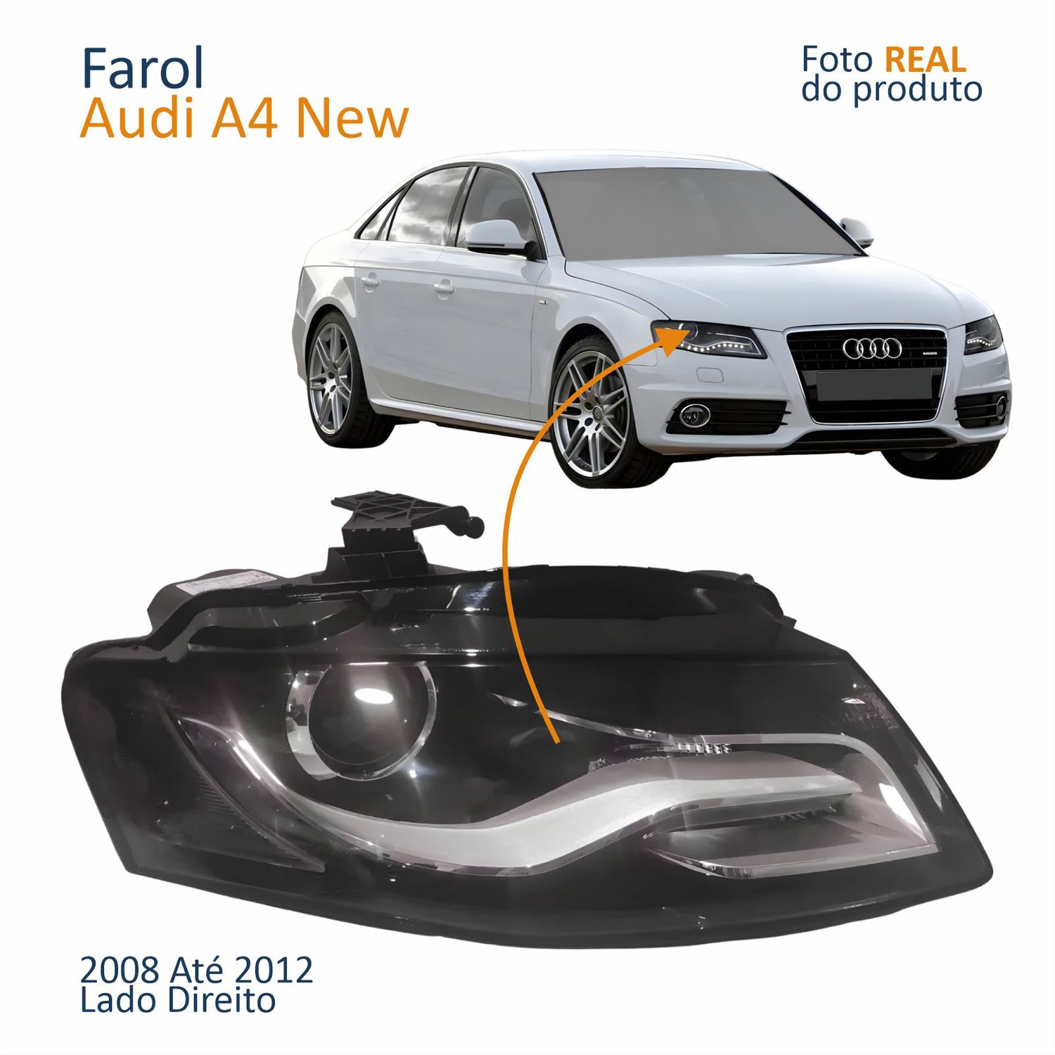 Farol Principal Audi A4 New 2008 2009 2010 2011 2012 Led Bi-Xenon Lado Direito Passageiro
