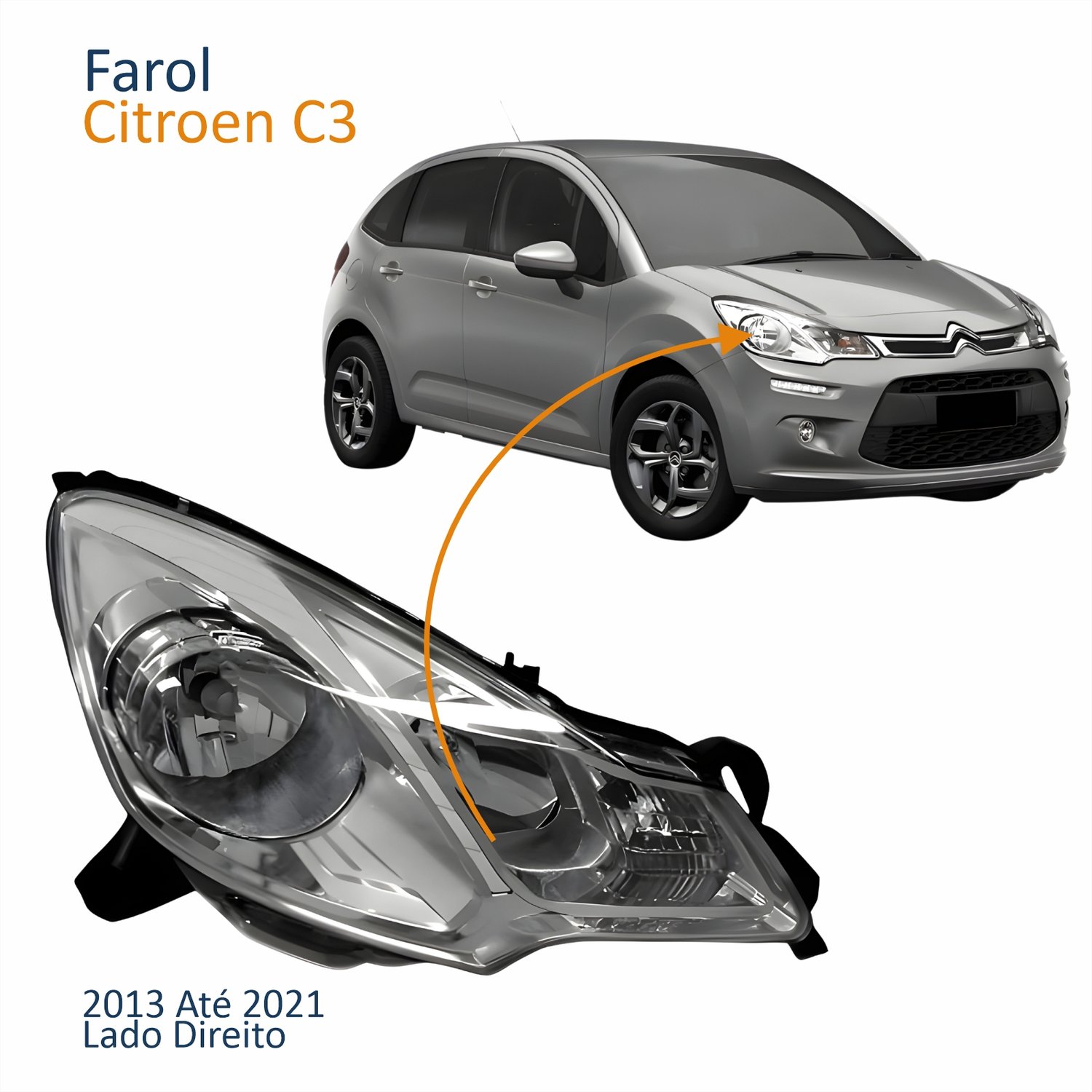 Farol Principal Citroen C3 2013 Até 2021 Máscara Cromada Lado Direito Passageiro