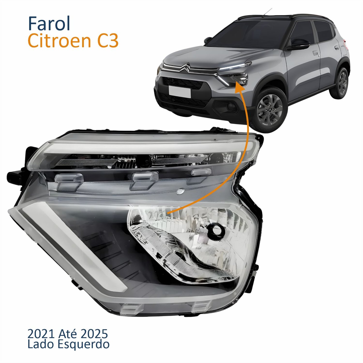 Farol Principal Citroen C3 2021 2022 2023 2024 2025 Sem Led Drl Lado Esquerdo Motorista