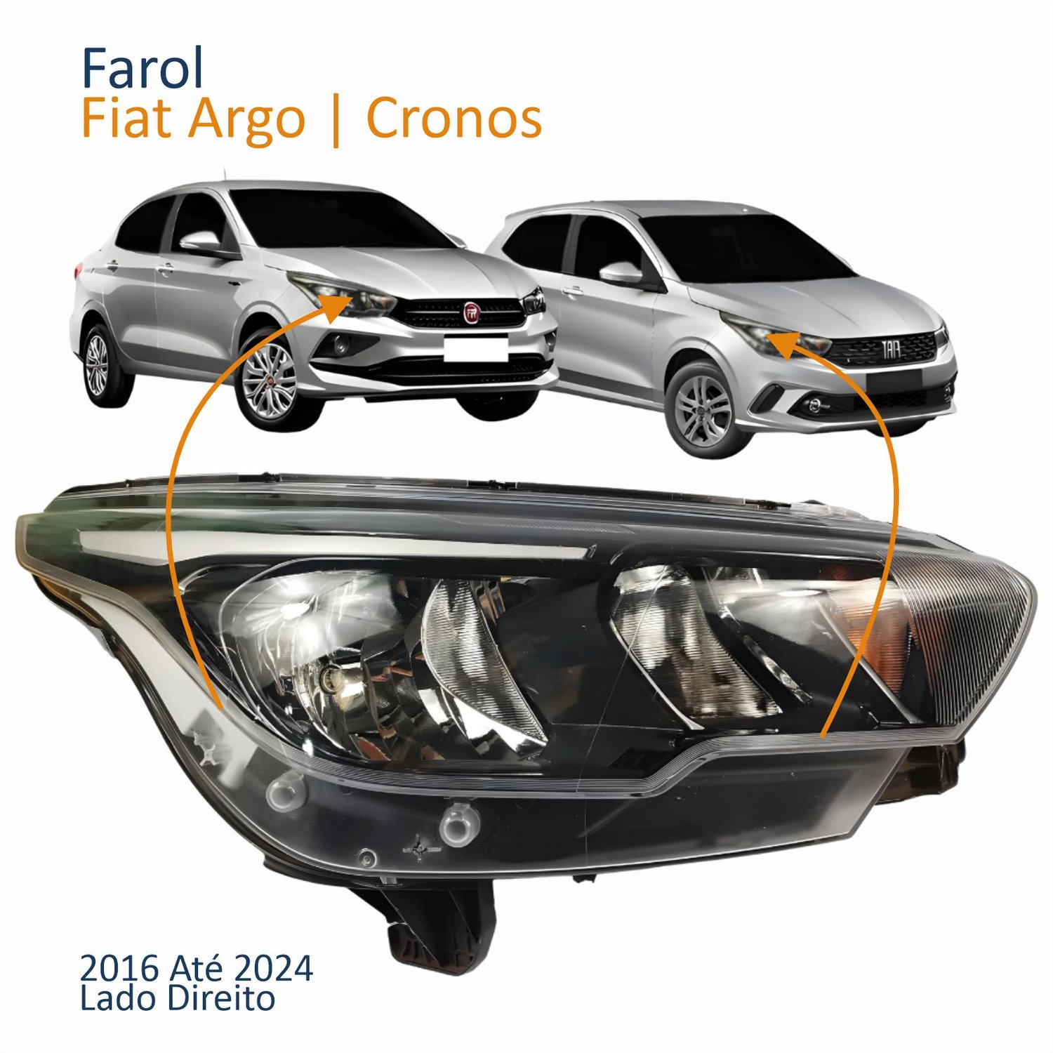 Farol Principal Fiat Argo Cronos 2016 Até 2024 Máscara Negra Com Led Lado Direito Passageiro