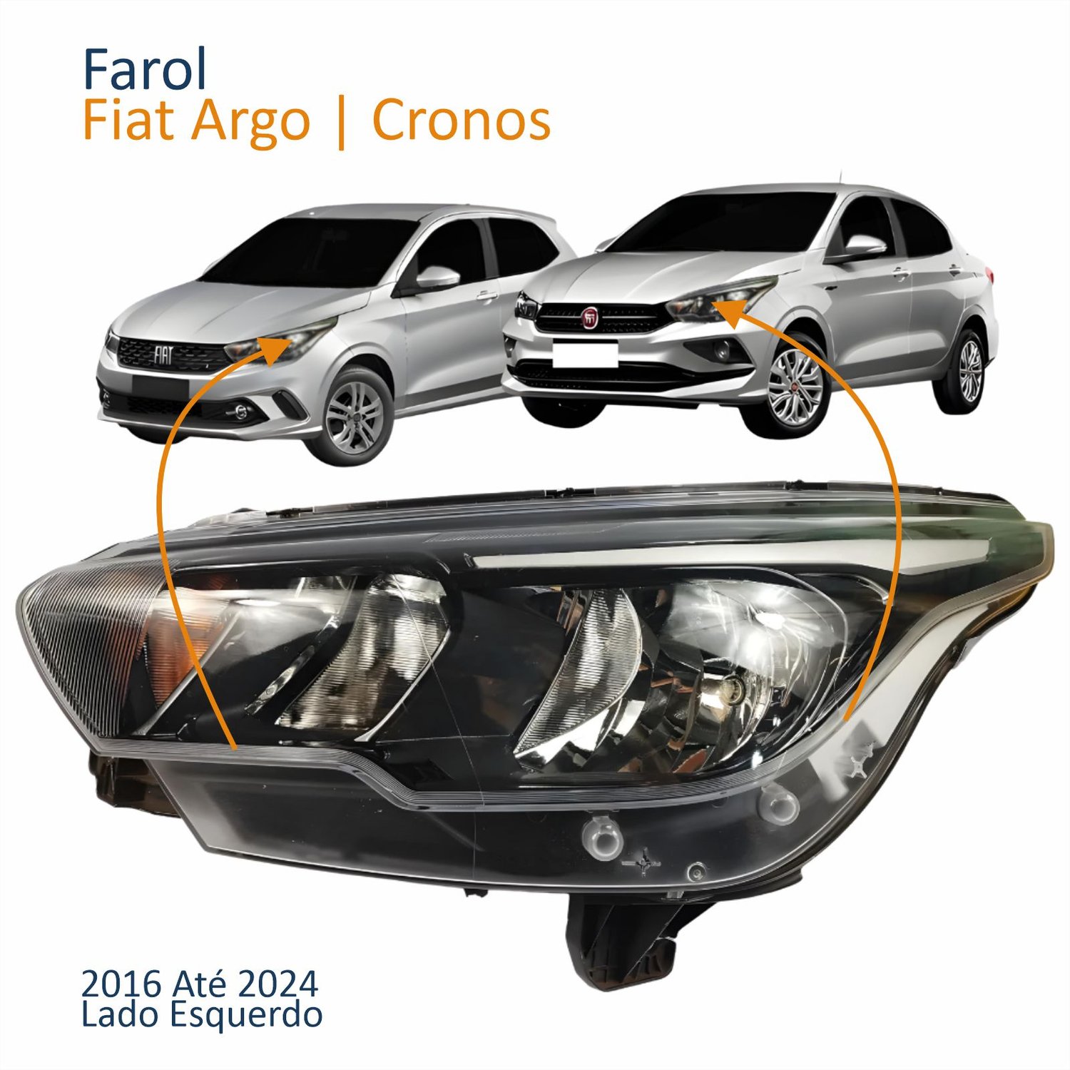 Farol Principal Fiat Argo Cronos 2016 Até 2024 Máscara Negra Com Led Lado Esquerdo Motorista