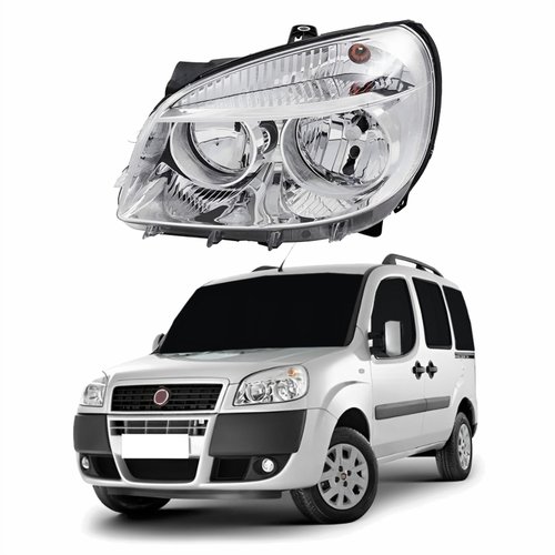 Farol Principal Fiat Doblo 2010 Até 2018 Máscara Cromada Lado Esquerdo Motorista