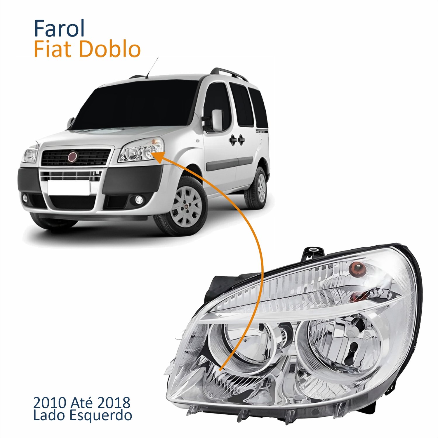 Farol Principal Fiat Doblo 2010 Até 2018 Máscara Cromada Lado Esquerdo Motorista