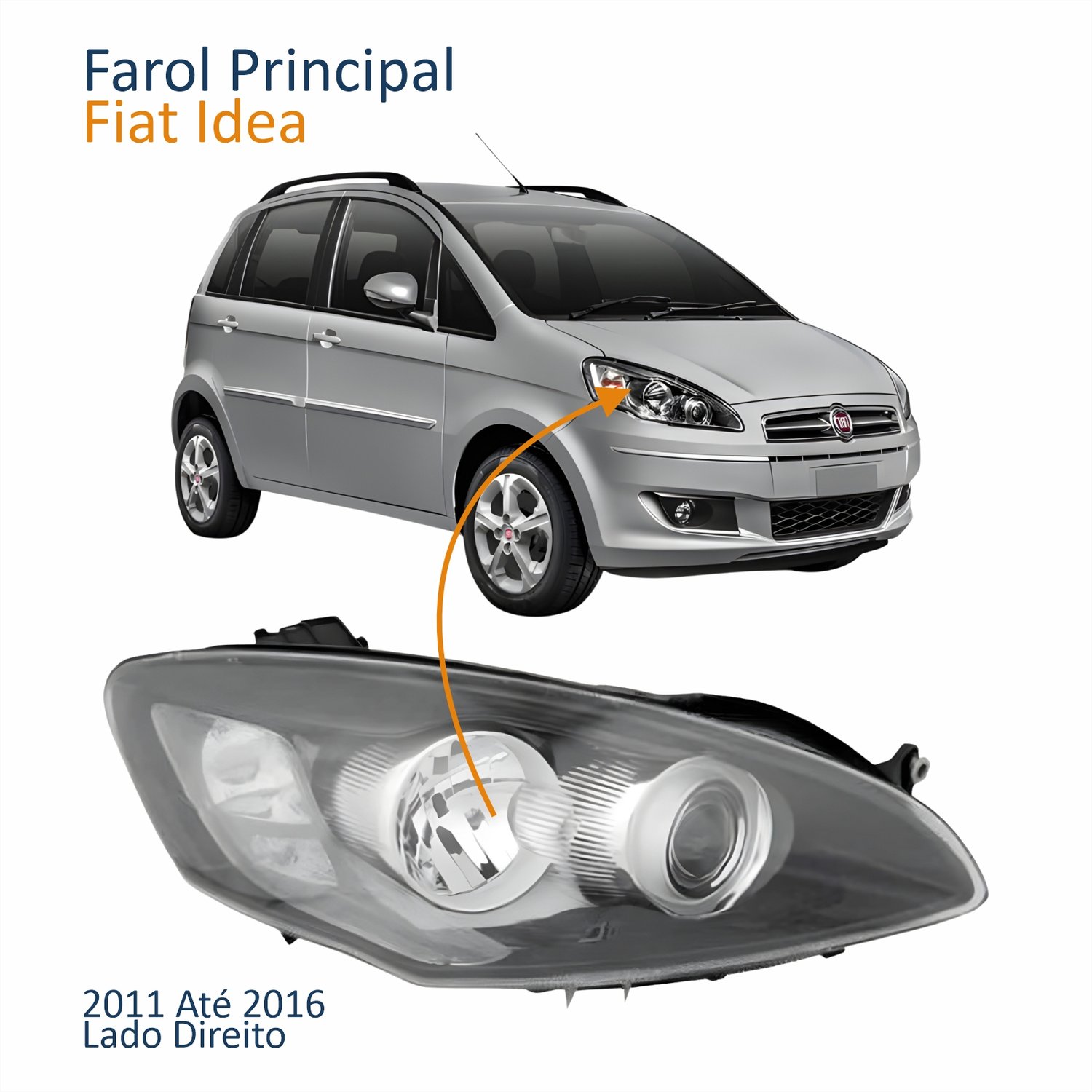 Farol Principal Fiat Idea 2011 Até 2016 Cinza Lado Direito Passageiro