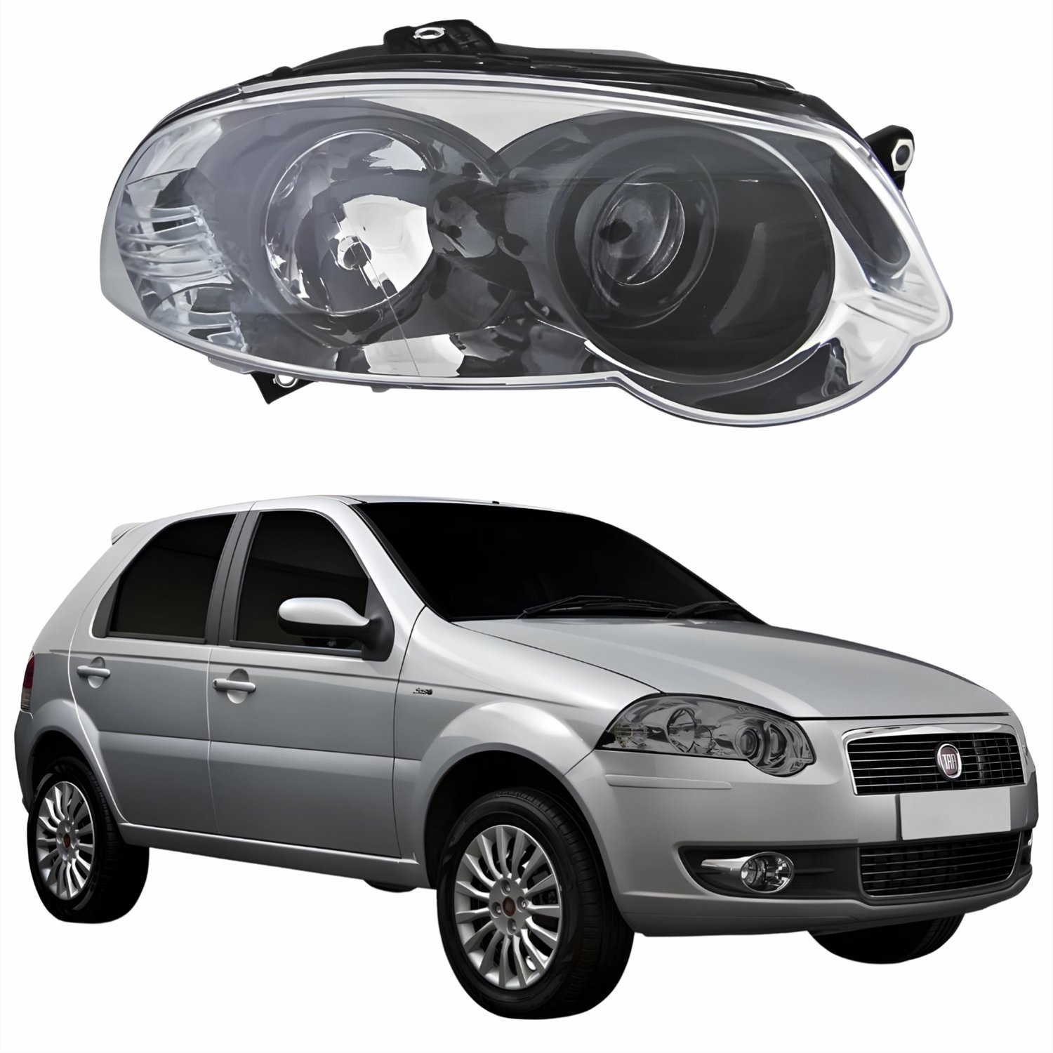 Farol Principal Fiat Palio Siena Strada Weekend 2008 Até 2012 Máscara Cromada Anel Negro Lado Direito PassageiroLado: Único