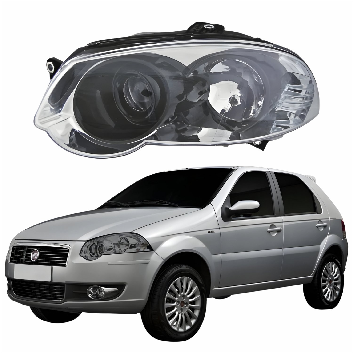 Farol Principal Fiat Palio 2008 Até 2012 Máscara Cromada Anel Negro Lado Esquerdo Motorista