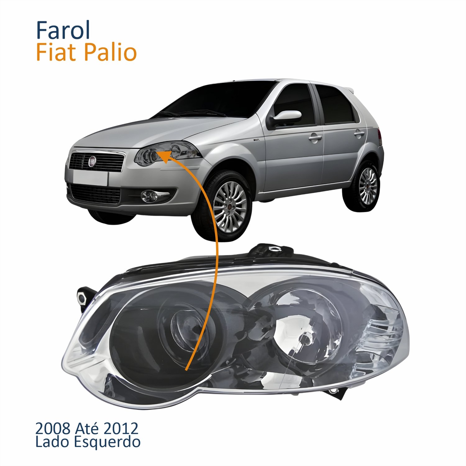Farol Principal Fiat Palio Siena Strada Weekend 2008 Até 2012 Máscara Cromada Anel Negro Lado Esquerdo MotoristaLado: Único
